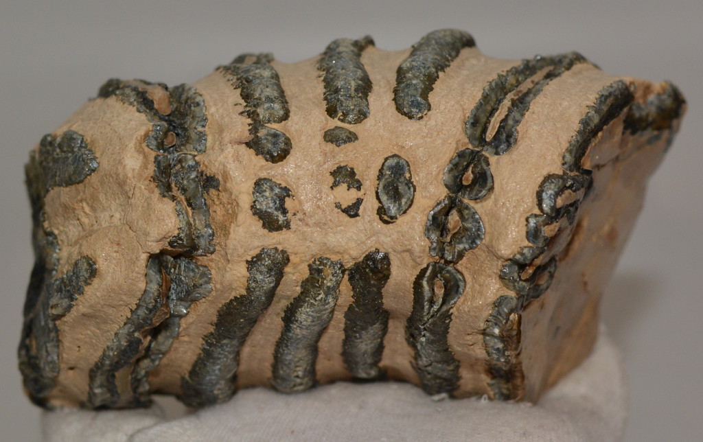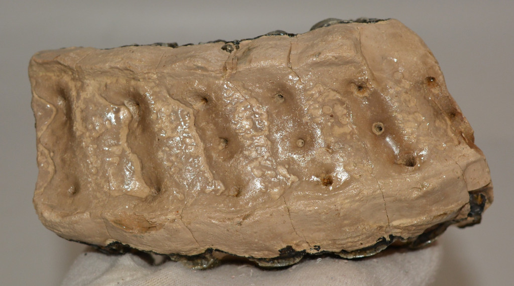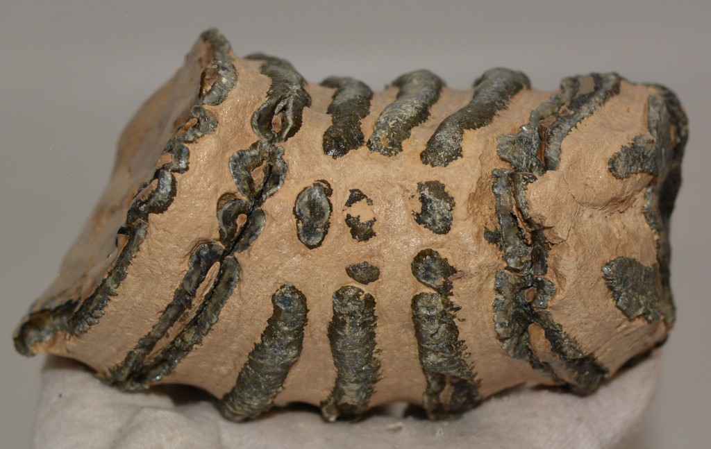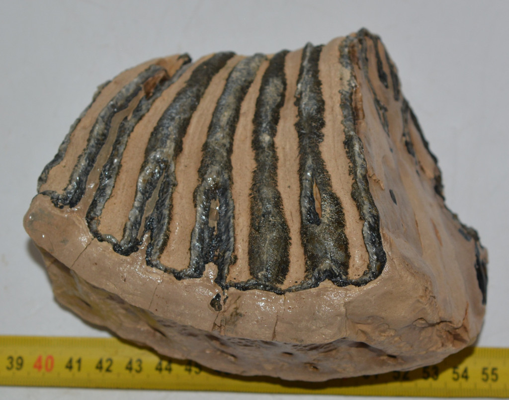 Mammuthus sp. részleges mamut fog. A mamut fosszília Magyarországon, Pest megyében kavicsbányászat során került a felszínre. A fog méretei kb: hosszúsága 143 mm, magassága 116 mm, szélessége 83 mm. Tömege kb: 1430 gramm + csomagolás. A fog felülete ethanolba oldott Polyvinyl Butyral 30 nevű anyaggal van konzerválva.