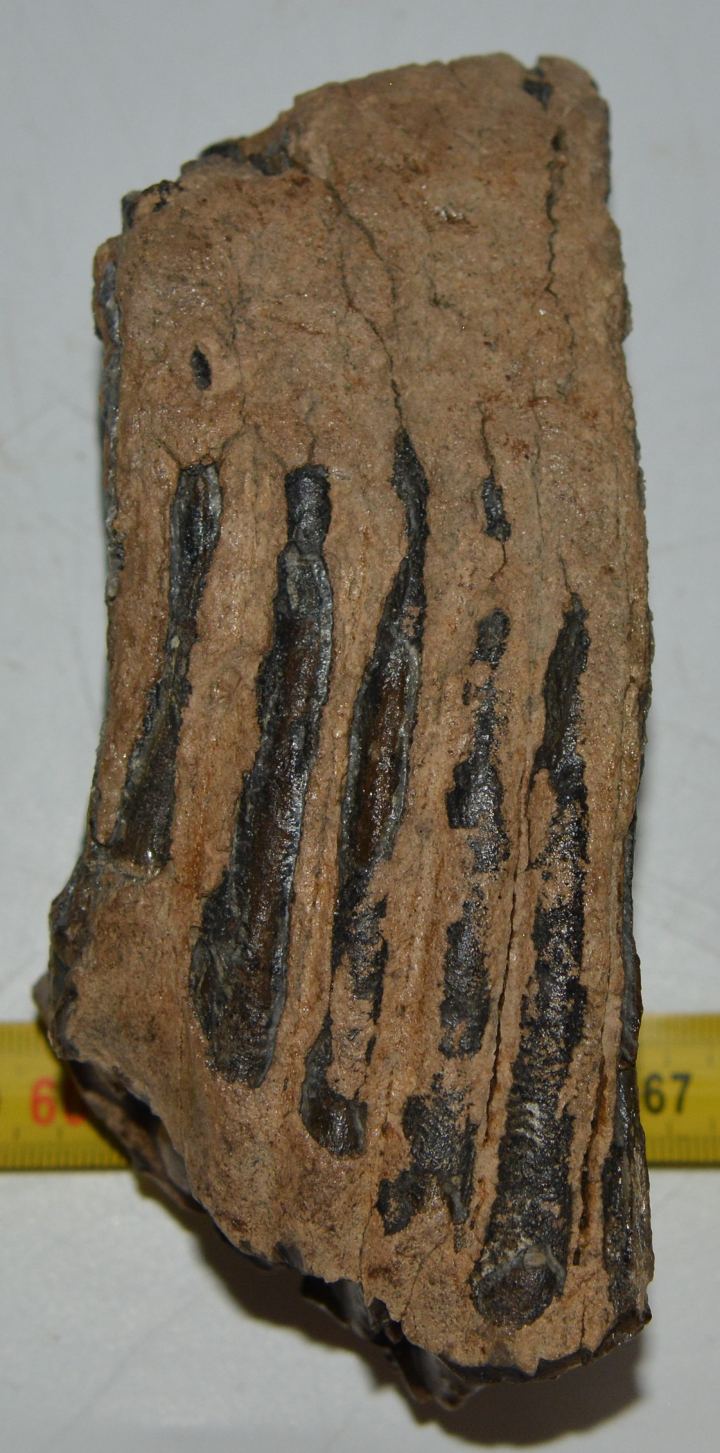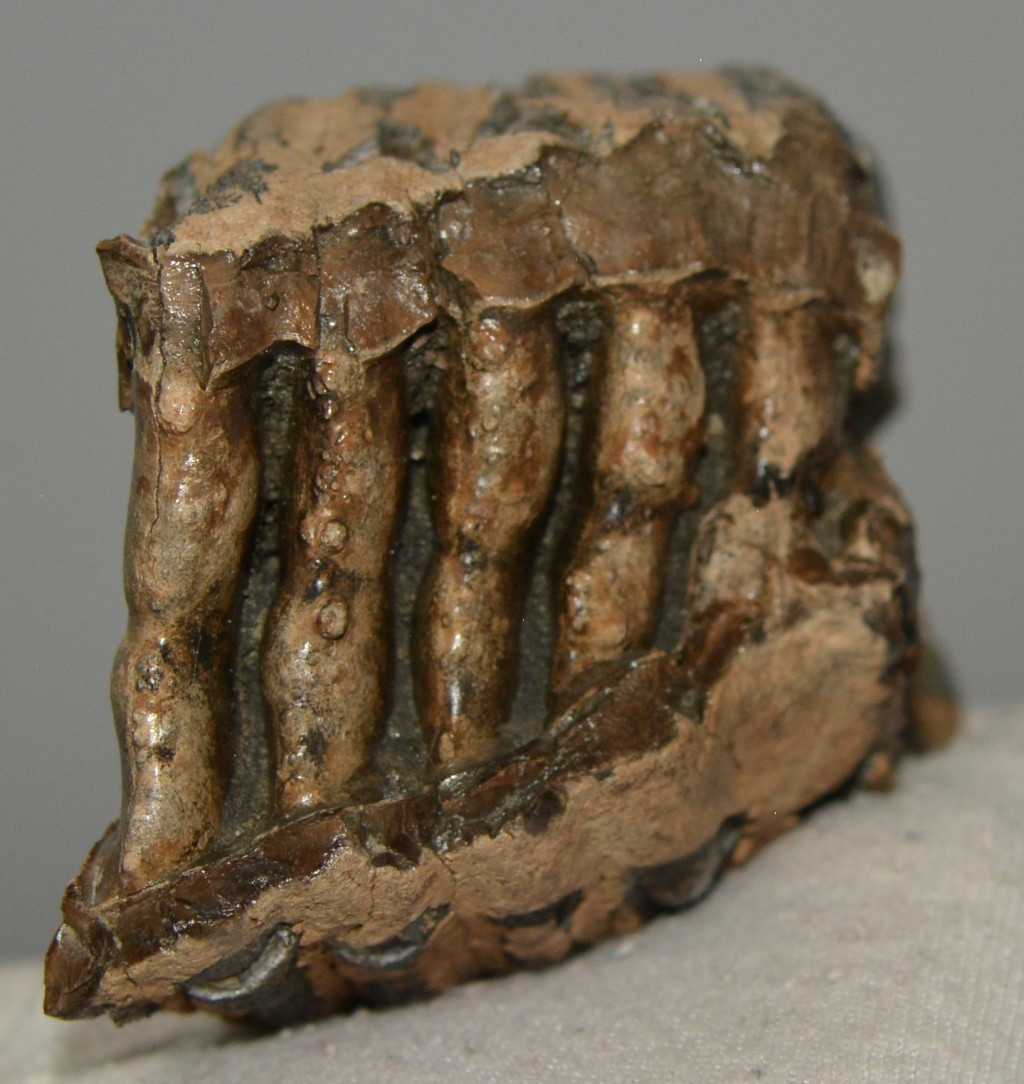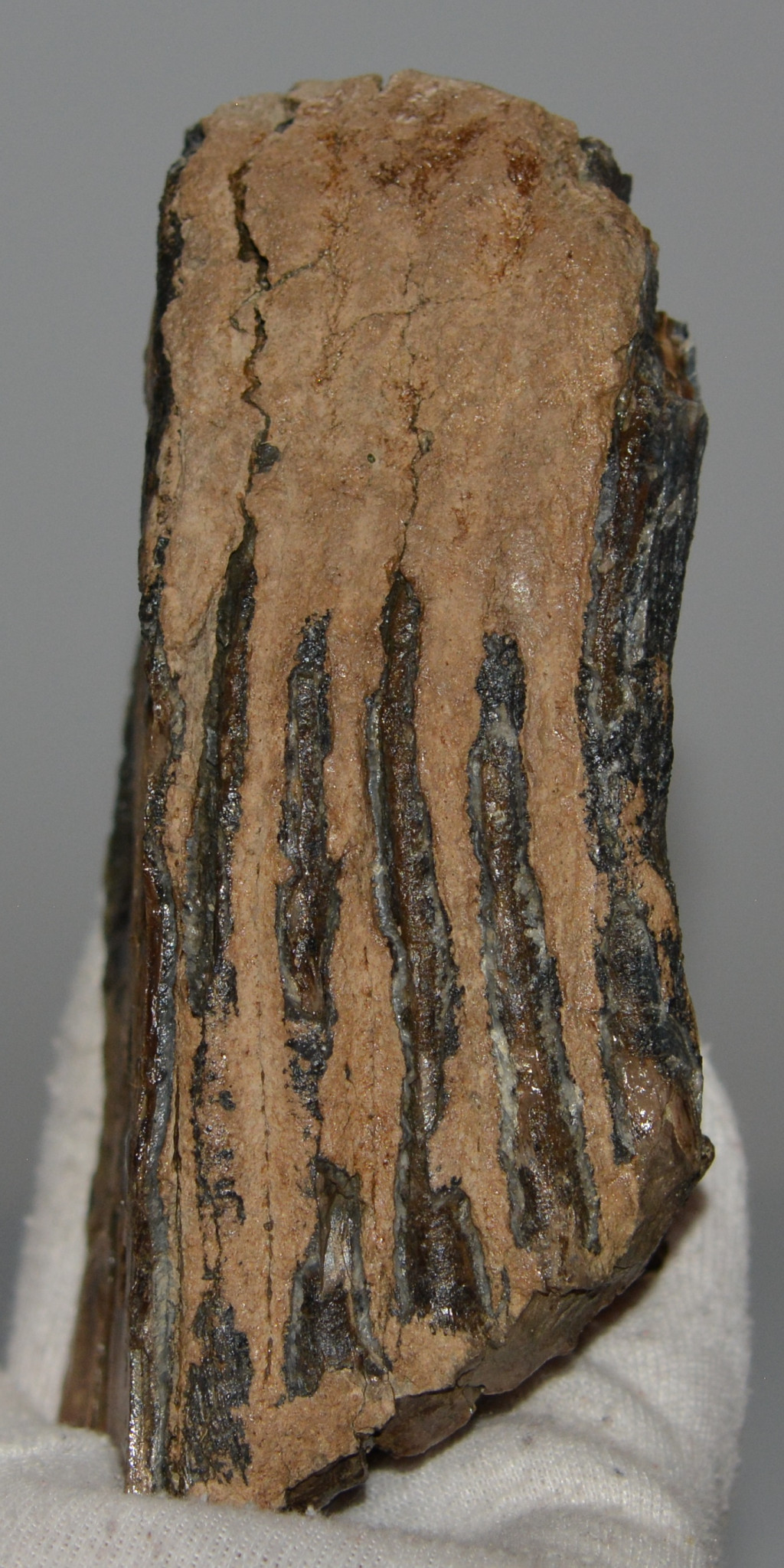 Mammuthus primigenius (gyapjas mamut) részleges fog. A mamut fosszília Magyarországon, Heves megyében kavicsbányászat során került a felszínre. A fog méretei kb: hosszúsága 59,4 mm, magassága 149,3 mm, szélessége 72,3 mm. Tömege kb: 850 gramm + csomagolás. A fog felülete ethanolba oldott Polyvinyl Butyral 30 nevű anyaggal van konzerválva.