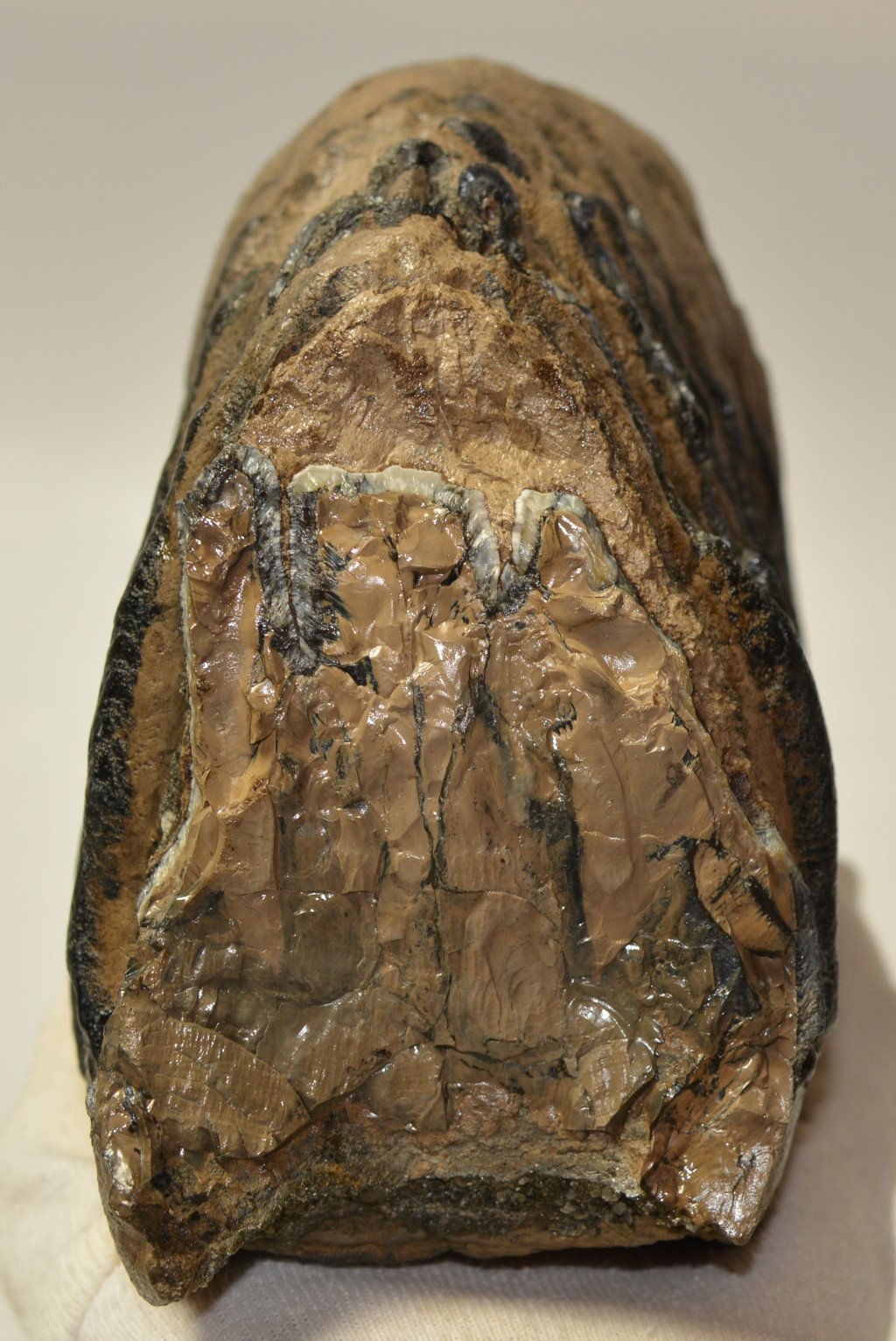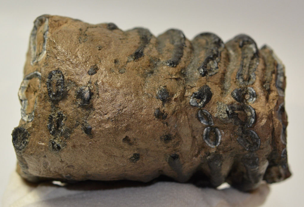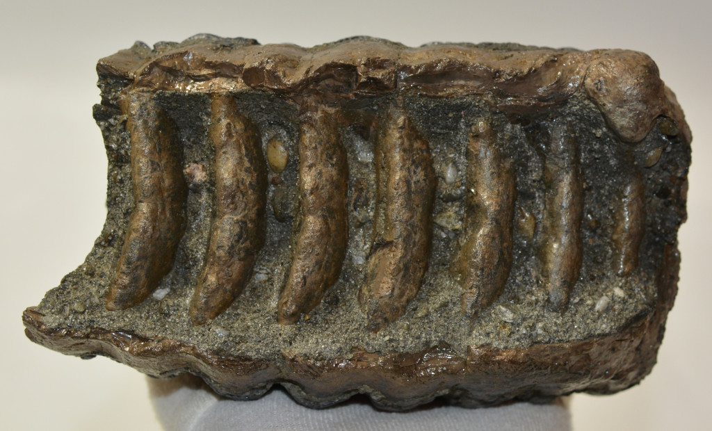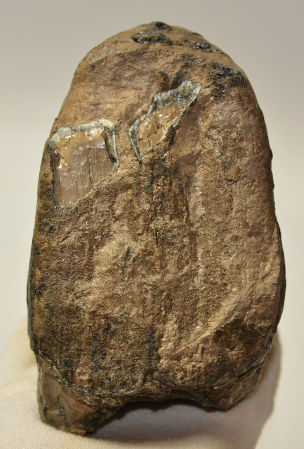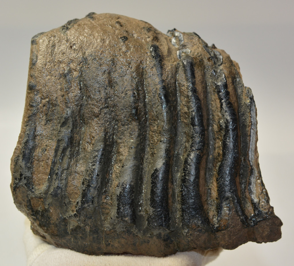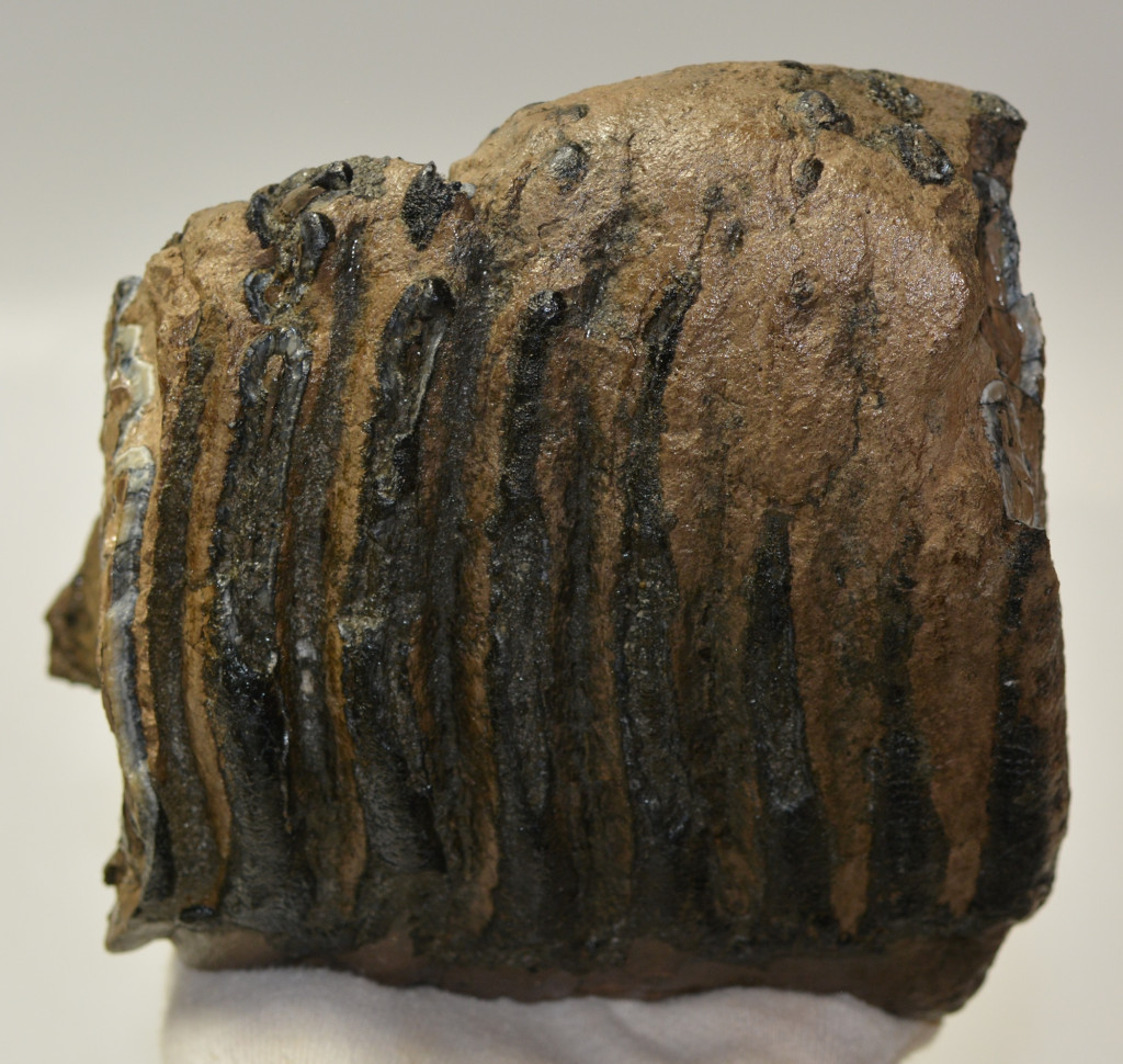 Mammuthus meridionalis (déli mamut) részleges fog. A mamut fosszília Magyarországon, Pest megyében kavicsbányászat során került a felszínre. A fog méretei kb: hosszúsága 165 mm, magassága 147 mm, szélessége 94 mm. Tömege kb: 2659 gramm + csomagolás. A fog felülete ethanolba oldott Polyvinyl Butyral 30 nevű anyaggal van konzerválva.