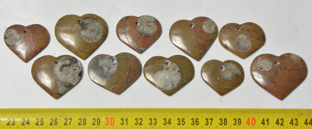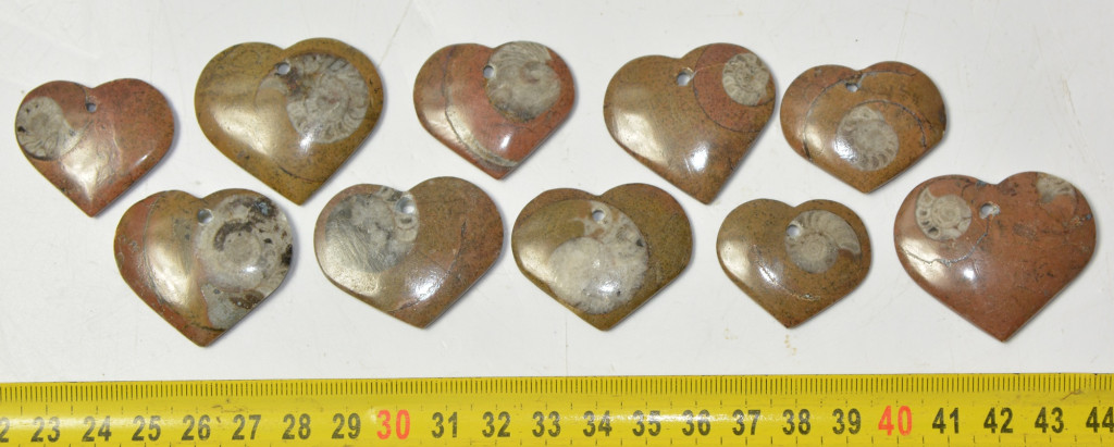 10 db szív alakú ammonitesz medál