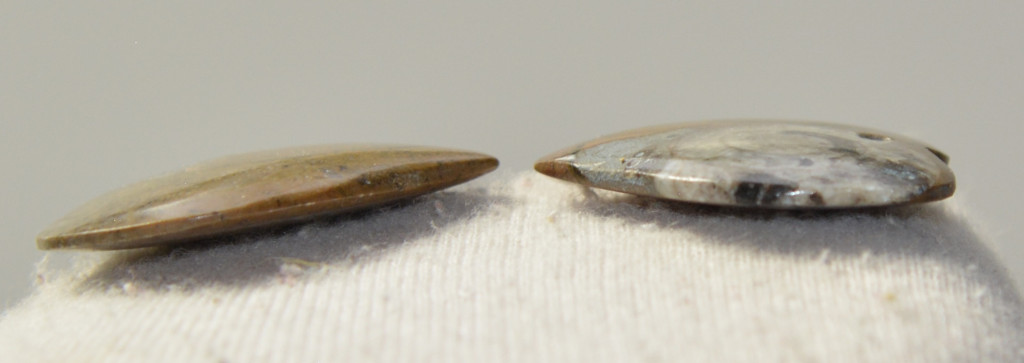 Devon korú 10 db kalcitosodott ammonitesz (Goniatites) szív formára csiszolt mészkőben ami medálnak át van fúrva. Az ammoniteszek származási helye Marokkó. Az ammoniteszek méretei kb: 40,4 - 31,4 mm x 34,6 - 26,8 mm x 6 - 4,9 mm közötti. A 10 db medál ösztömege 76 gramm + csomagolás.
