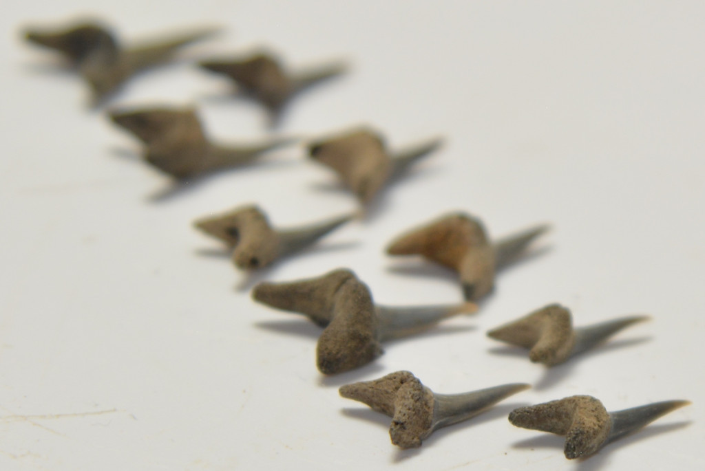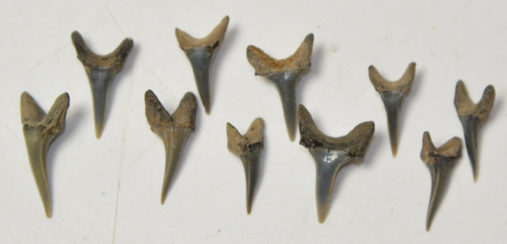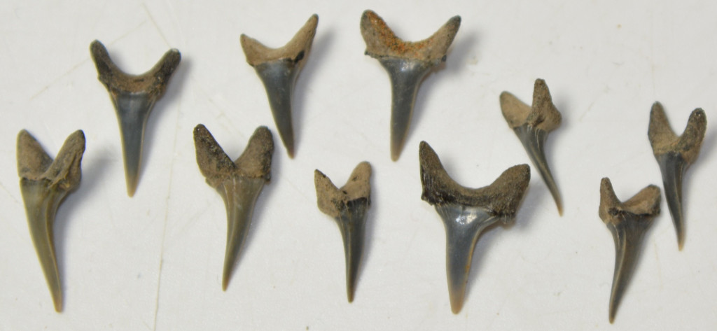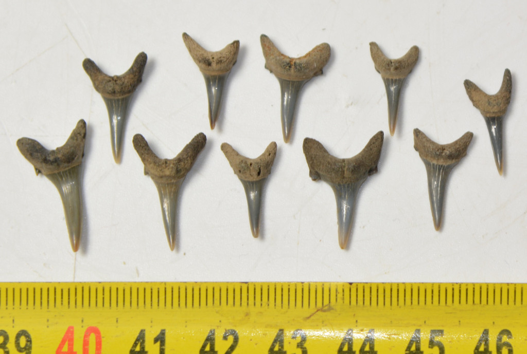10 darab moicén korú ( kb: 8 - 5 millió éves) Carcharias acutissima nevű cápa foga. A fogak származási helye Belgium, Antwerpen-Hoewenen közötti terület. A fogak méretei kb: 14,6 - 19,7 mm x 6,9 -12,1 mm x 4,3 - 6 mm közötti. A 10 db cápa fog Tömege kb: 3 gramm + csomagolás. A fogak természetes állapotúak.