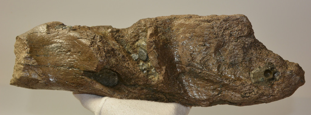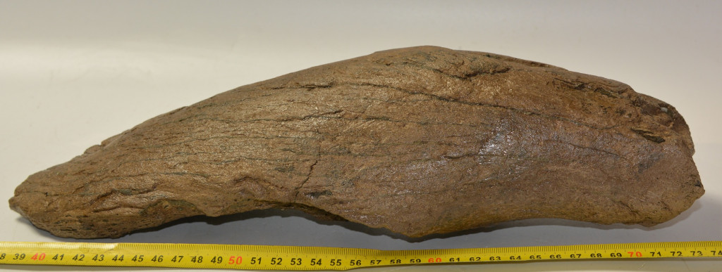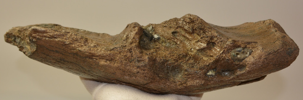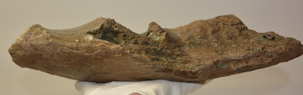 Mammuthus meridionalis (déli mamut) részleges jobb oldali alsó állkapocs csont. A mamut fosszília Magyarországon, Pest megyében kavicsbányászat során került a felszínre. A csont méretei kb: hosszúsága 368 mm, magassága 116 mm, szélessége 98 mm. Tömege kb: 3200 gramm + csomagolás. A csonton homok és kavics rákövesedések láthatóak. A csont felülete ethanolba oldott Polyvinyl Butyral 30 nevű anyaggal van konzerválva.