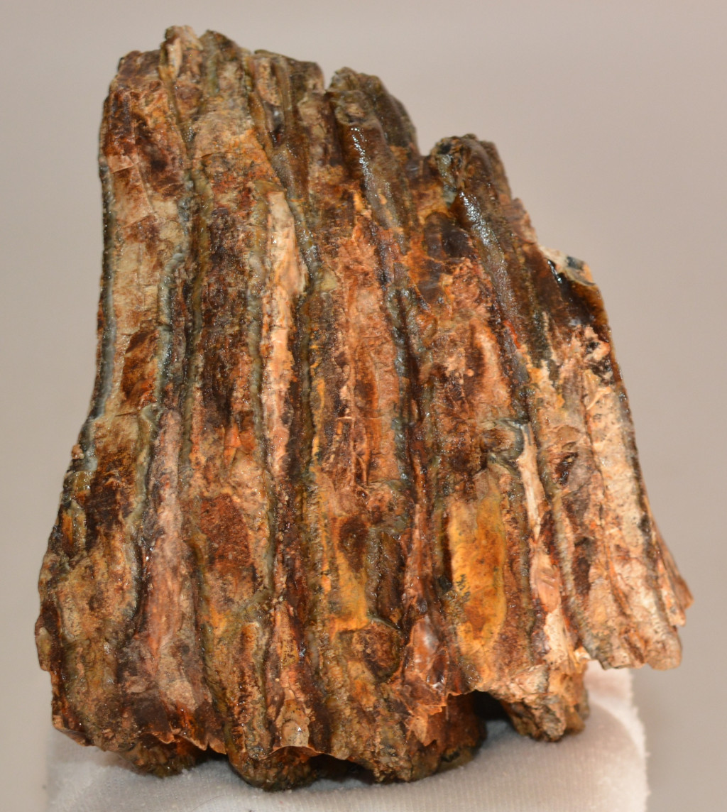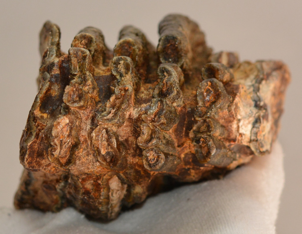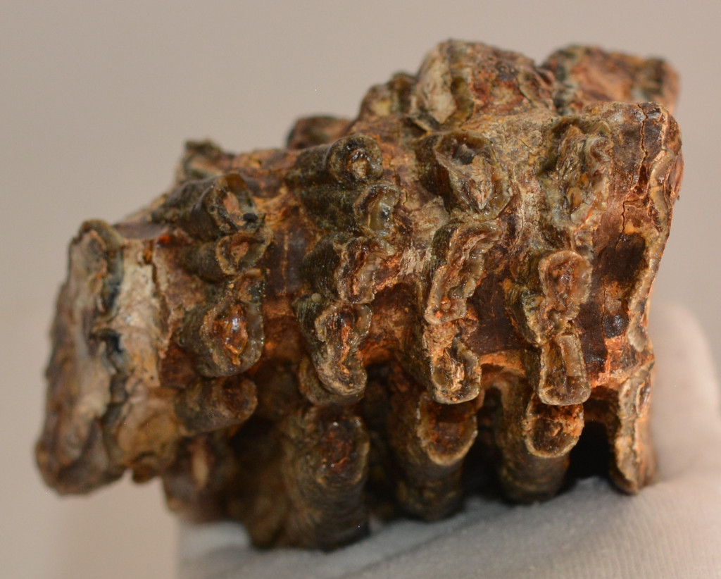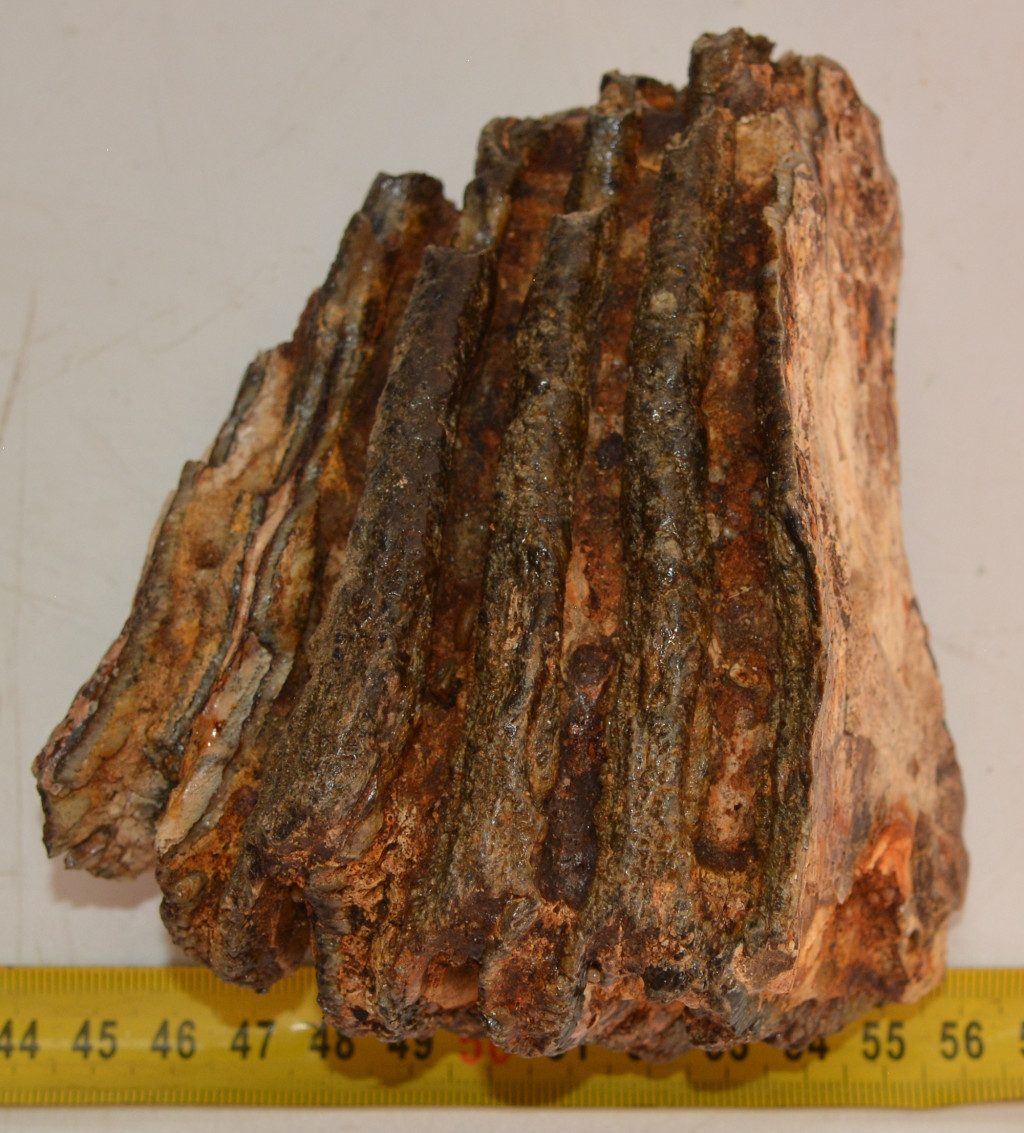 Mammuthus primigenius (gyapjas mamut) részleges fog. A mamut fosszília Magyarországon, Pest megyében kavicsbányászat során került a felszínre. A fog méretei kb: hosszúsága 95 mm, magassága 132 mm, szélessége 74 mm. Tömege kb: 807 gramm + csomagolás. A fog felülete ethanolba oldott Polyvinyl Butyral 30 nevű anyaggal van konzerválva.