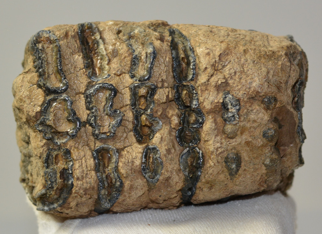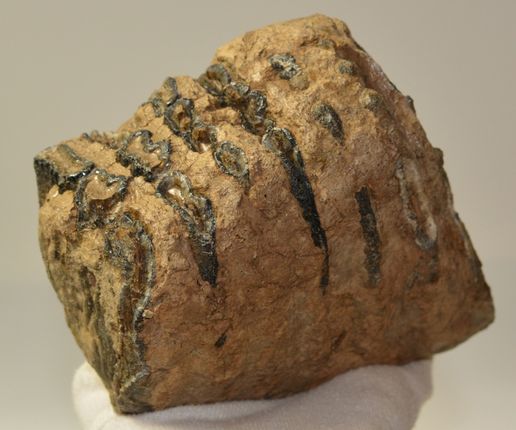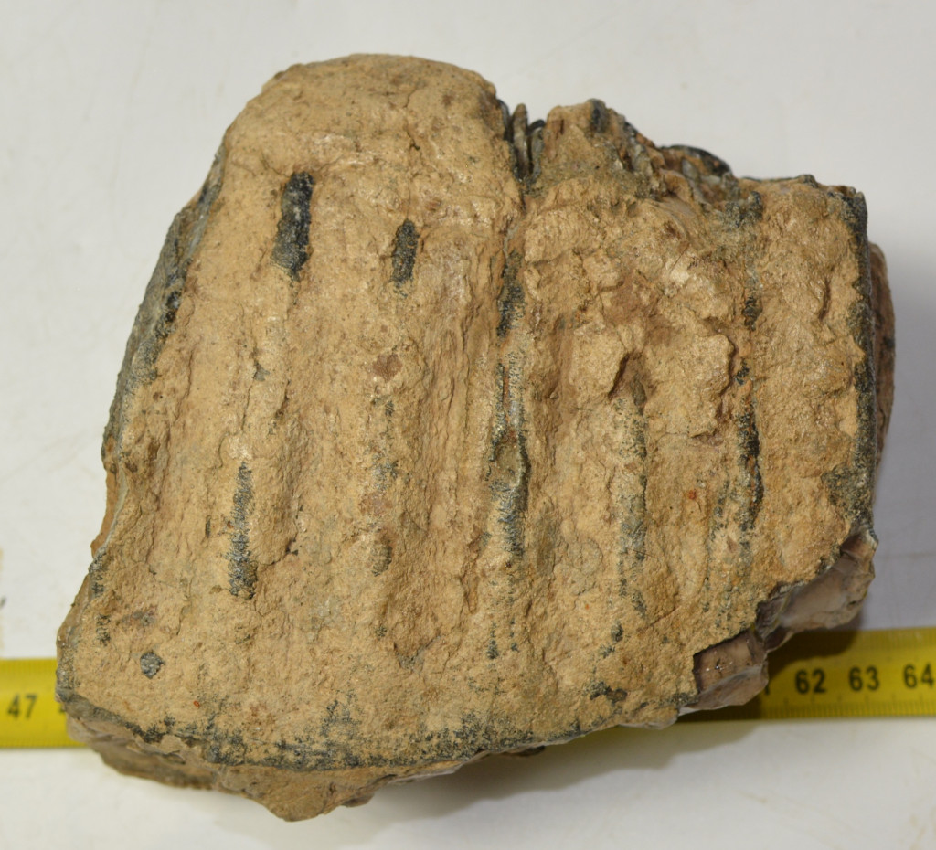 Mammuthus meridionalis (déli mamut) részleges fog. A mamut fosszília Magyarországon, Pest megyében kavicsbányászat során került a felszínre. A fog méretei kb: hosszúsága 133 mm, magassága 136 mm, szélessége 83 mm. Tömege kb: 1852 gramm + csomagolás. A fog felülete ethanolba oldott Polyvinyl Butyral 30 nevű anyaggal van konzerválva.