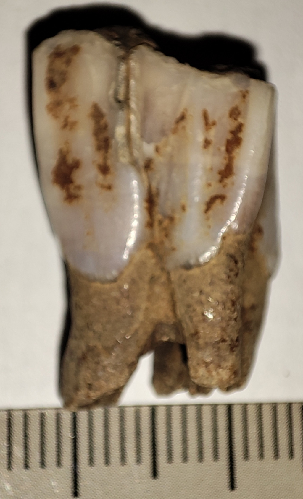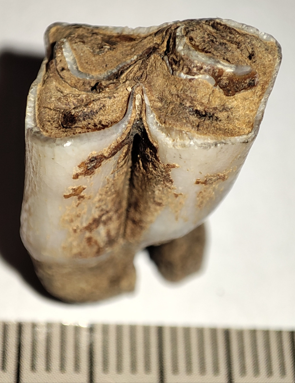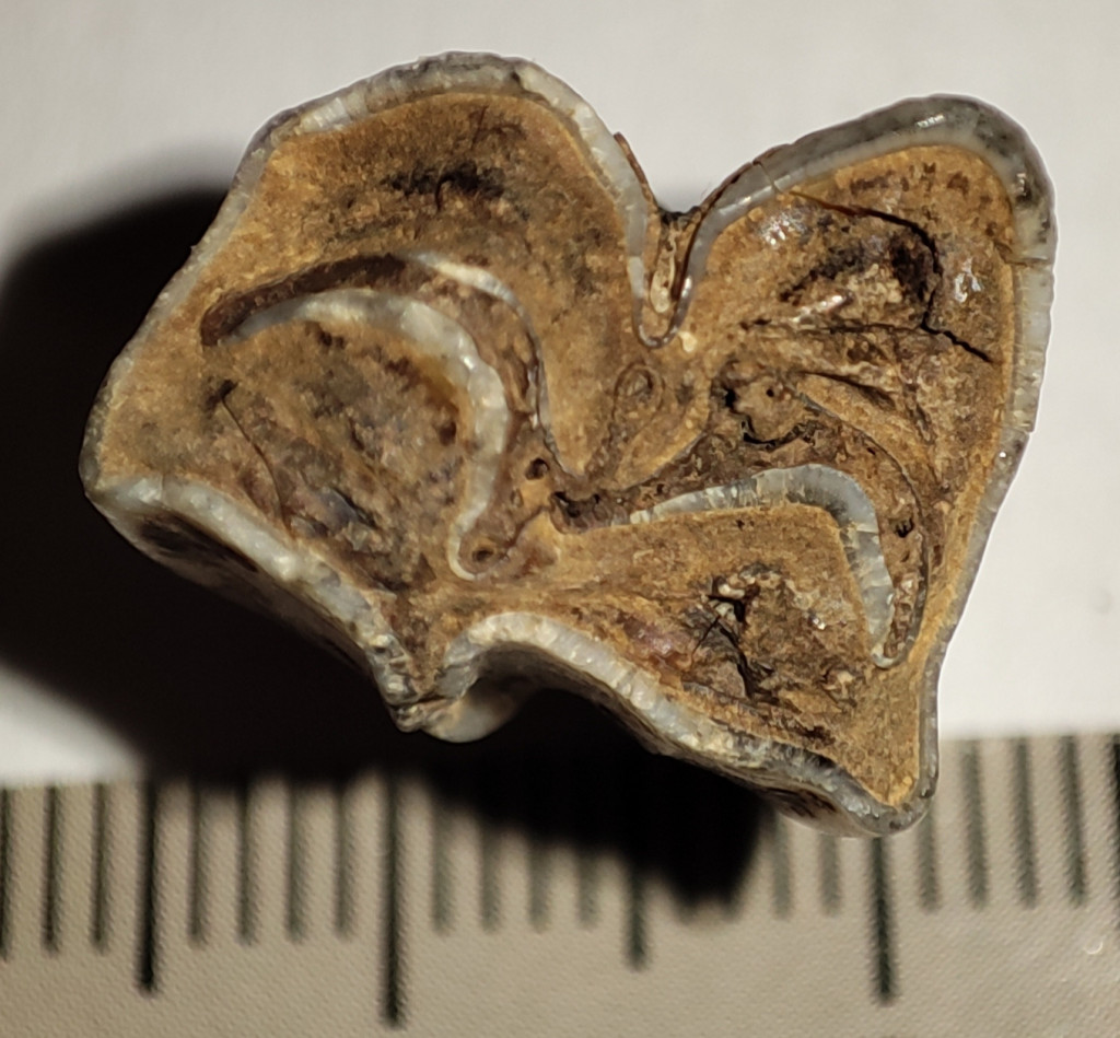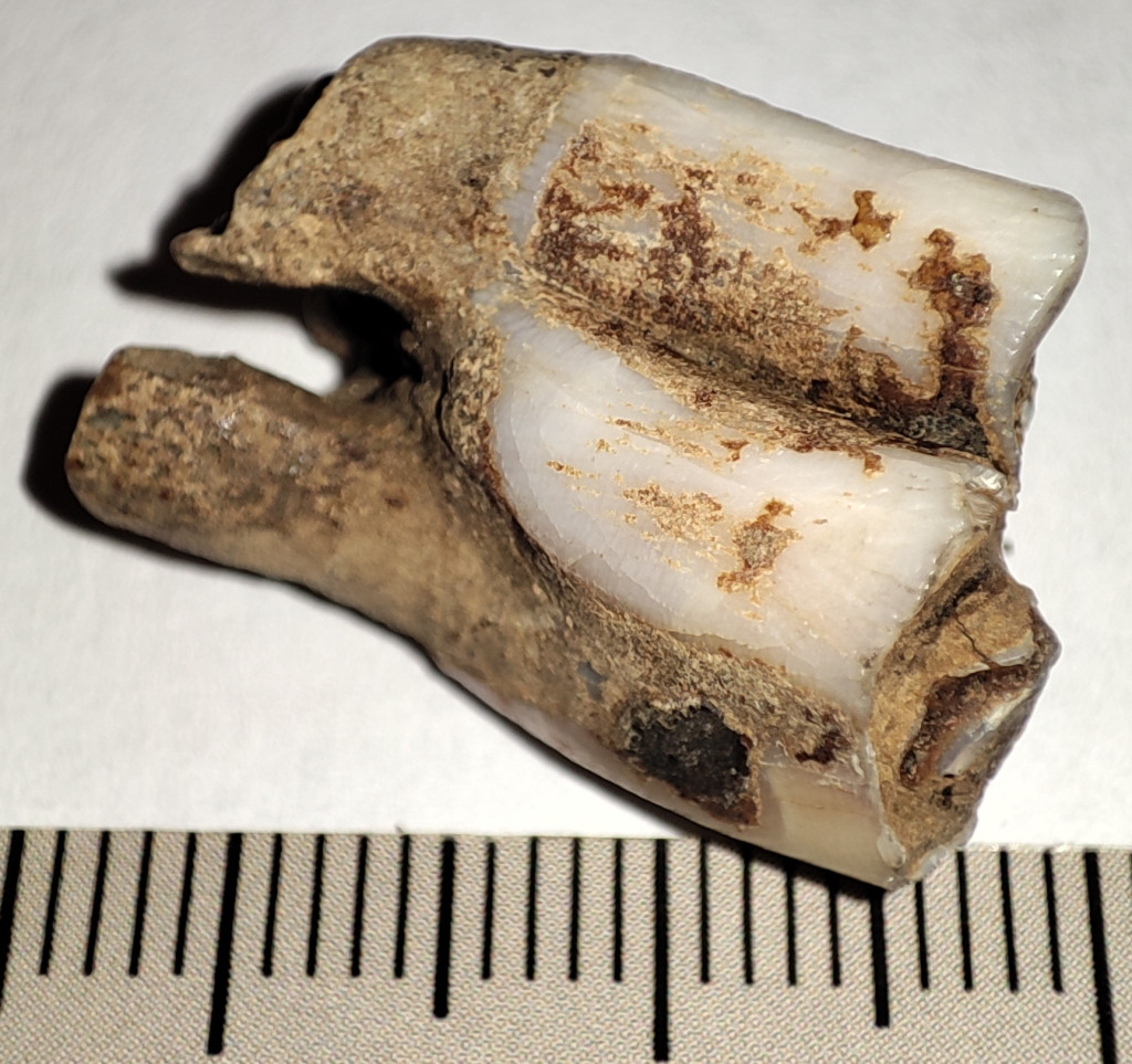 Pliocén korú Eotragus sp. (közepes méretű bovida) foga. Az Eotragus fosszília származási helye Indonézia, Java szigete. A fog méretei kb: 23,2 mm x 14,5 mm x 11,8 mm. Tömege kb: 4 gramm + csomagolás. A fog természetes állapotú nincs konzerválva.