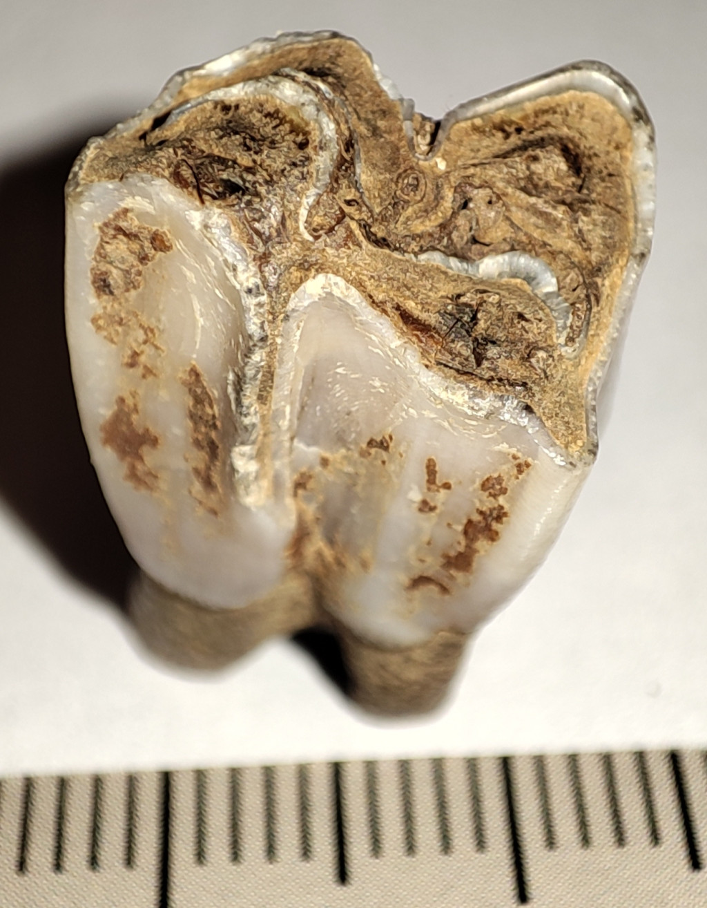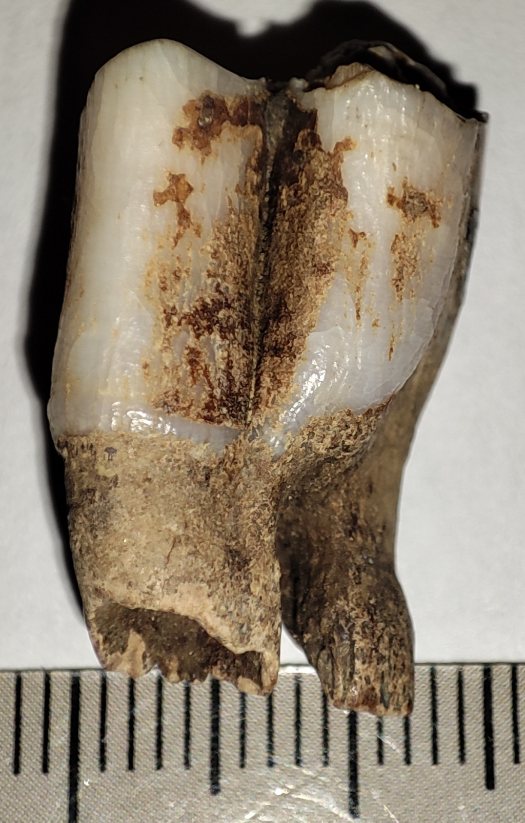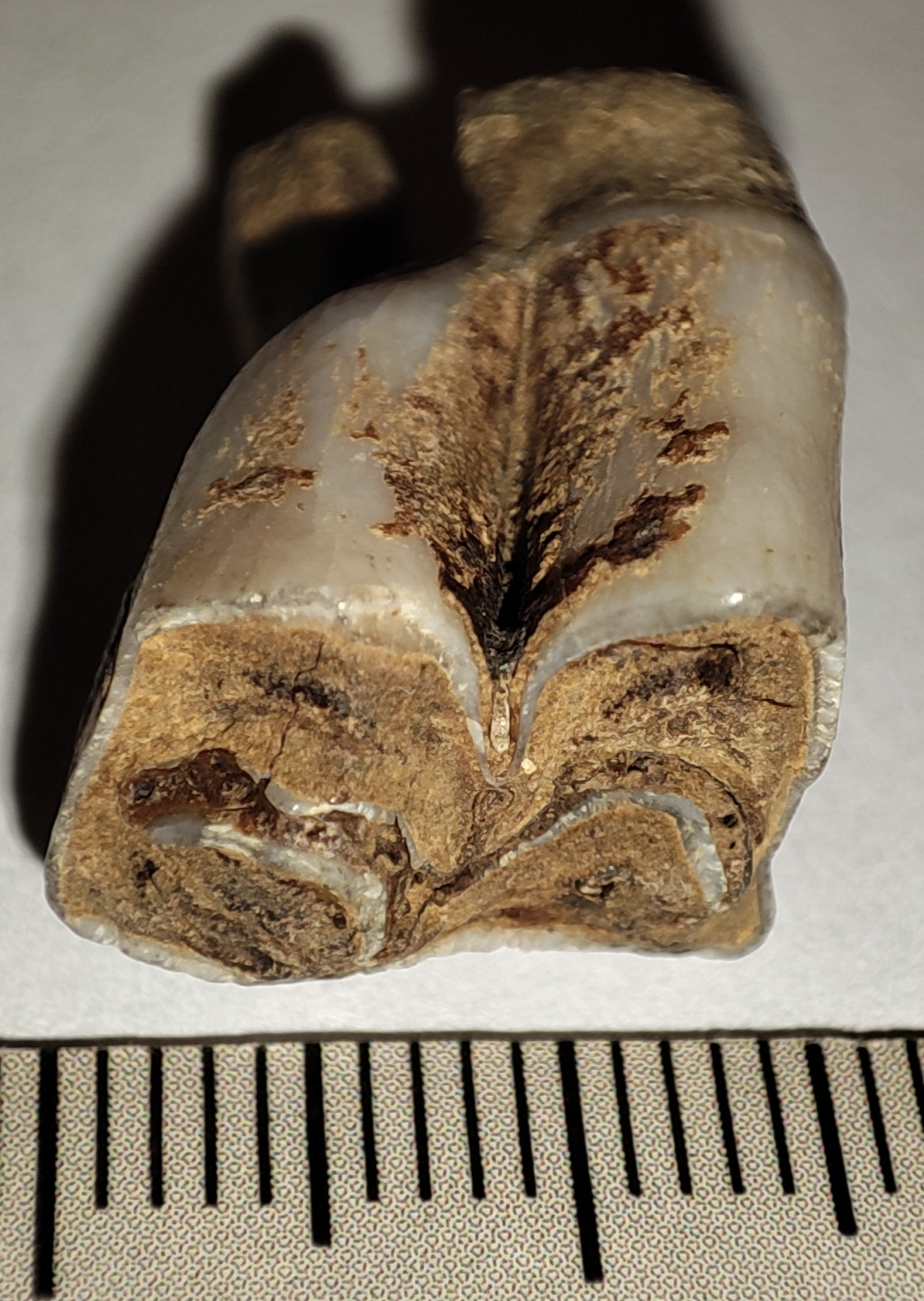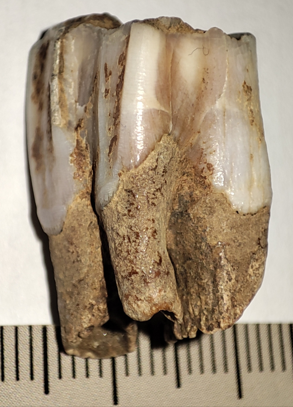 Pliocén korú Eotragus sp. (közepes méretű bovida) foga. Az Eotragus fosszília származási helye Indonézia, Java szigete. A fog méretei kb: 23,2 mm x 14,5 mm x 11,8 mm. Tömege kb: 4 gramm + csomagolás. A fog természetes állapotú nincs konzerválva.