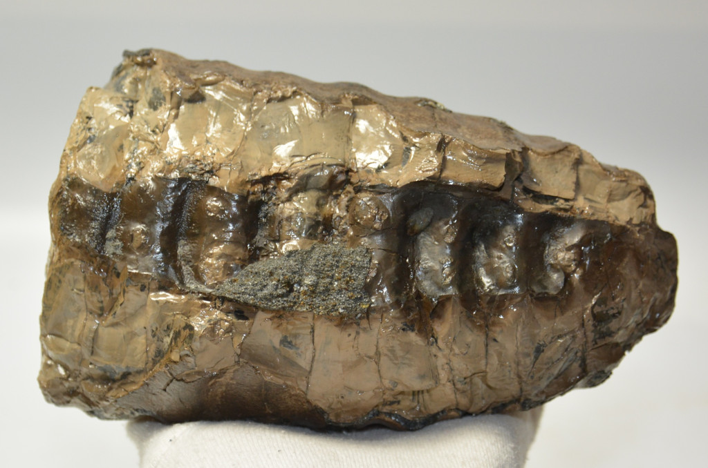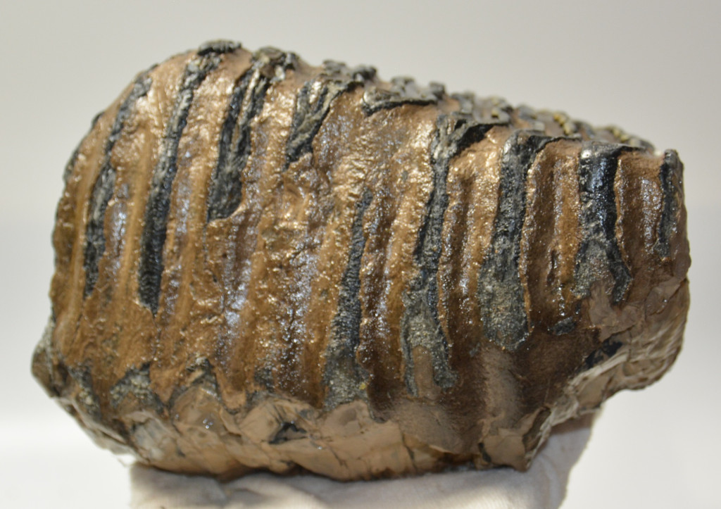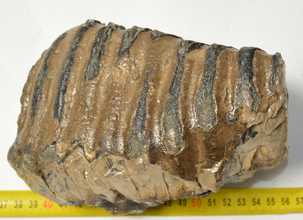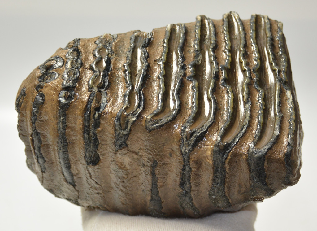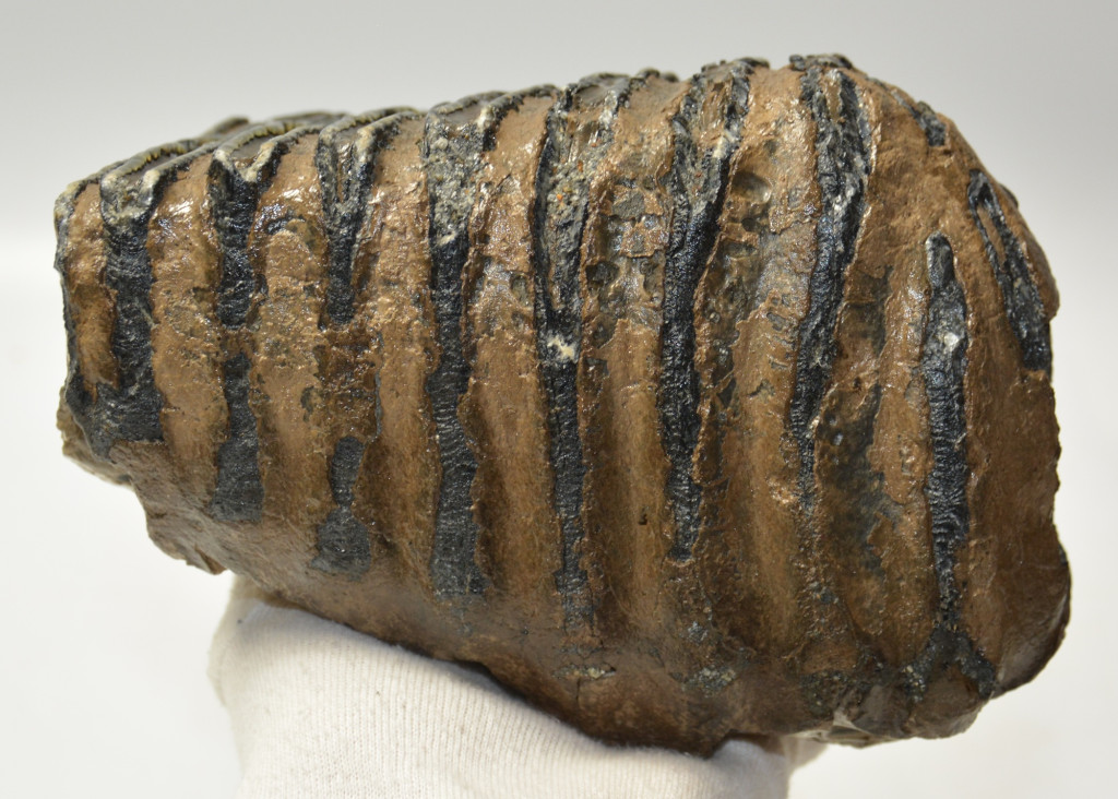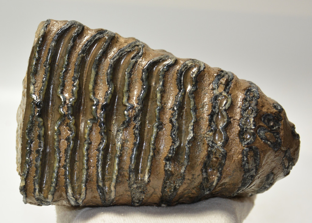 Mammuthus meridionalis (déli mamut) részleges fog. A mamut fosszília Magyarországon, Pest megyében kavicsbányászat során került a felszínre. A fog méretei kb: hosszúsága 174 mm, magassága 123 mm, szélessége 108 mm. Tömege kb: 2411 gramm + csomagolás. A fog felülete ethanolba oldott Polyvinyl Butyral 30 nevű anyaggal van konzerválva.