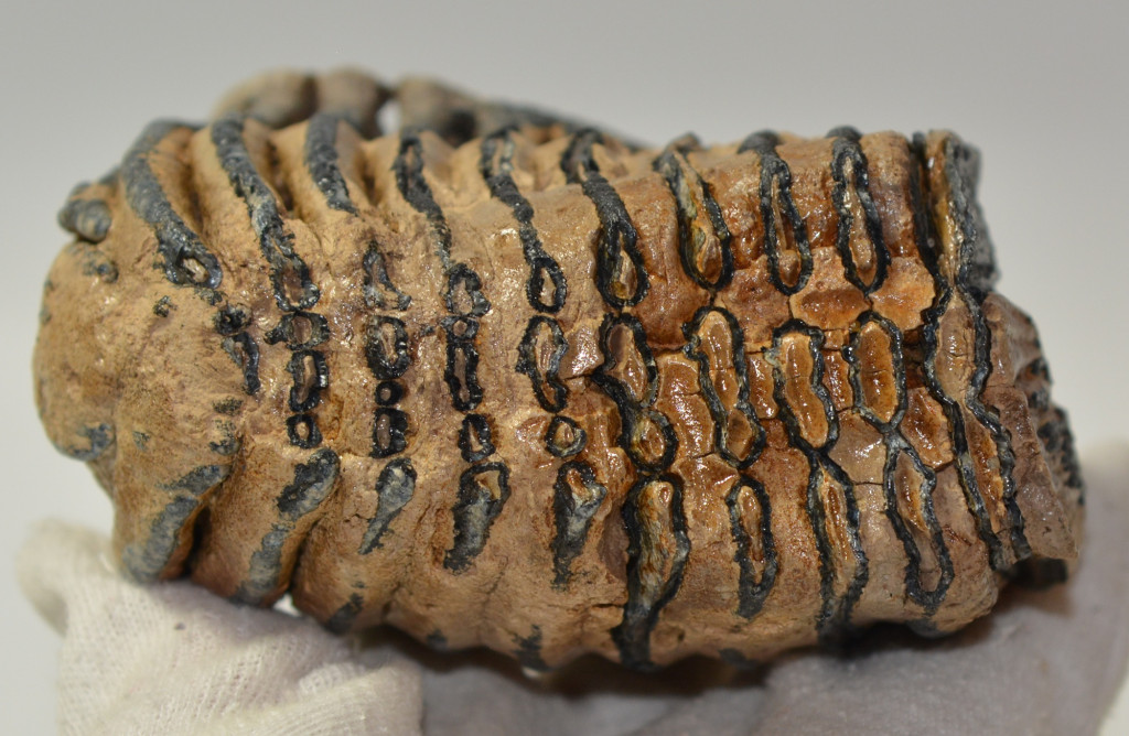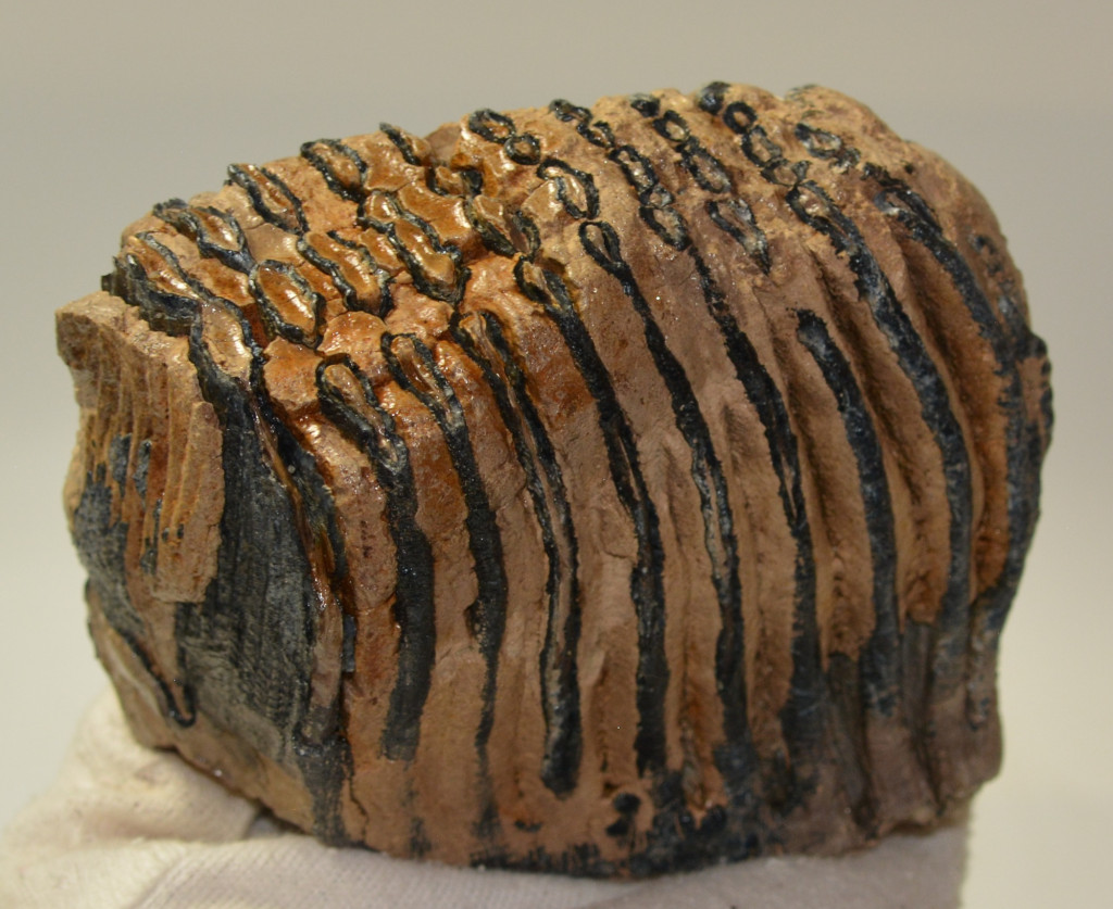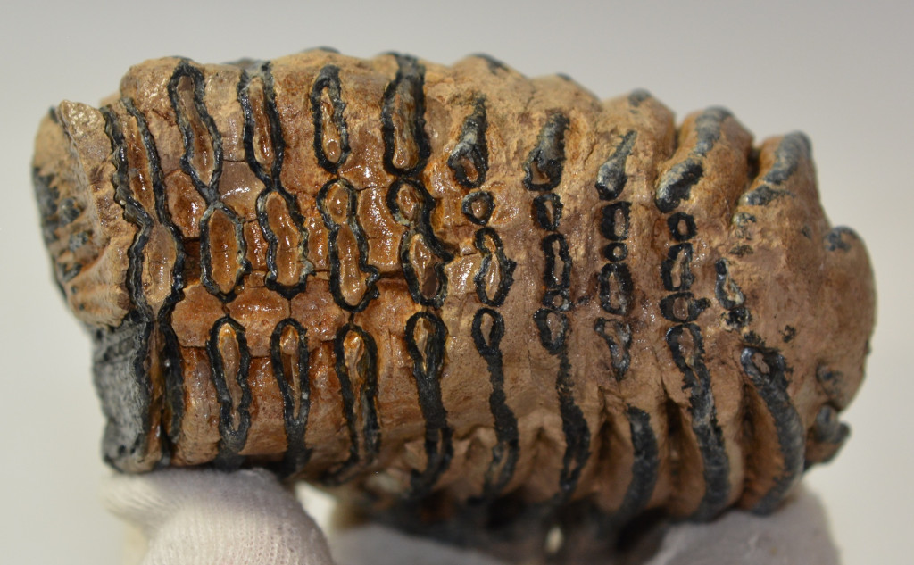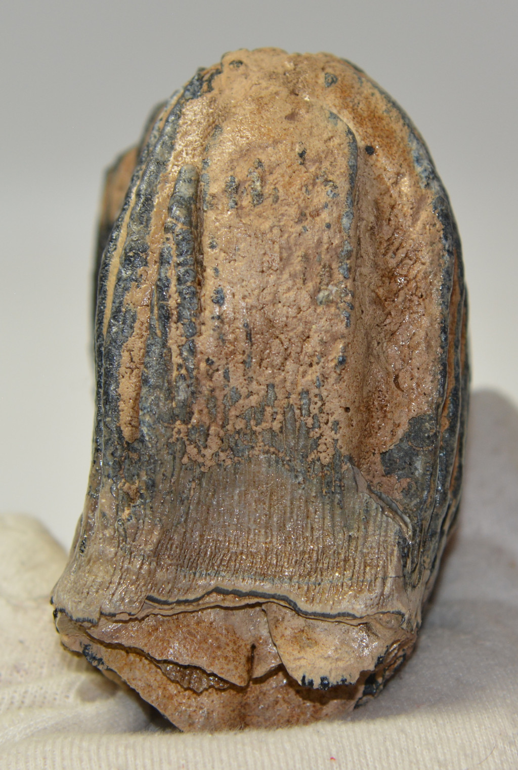 Mammuthus primigenius (gyapjas mamut) részleges fog. A mamut fosszília Magyarországon, Pest megyében kavicsbányászat során került a felszínre. A fog méretei kb: hosszúsága 110 mm, magassága 105 mm, szélessége 60 mm. Tömege kb: 732 gramm + csomagolás. A fog felülete ethanolba oldott Polyvinyl Butyral 30 nevű anyaggal van konzerválva.