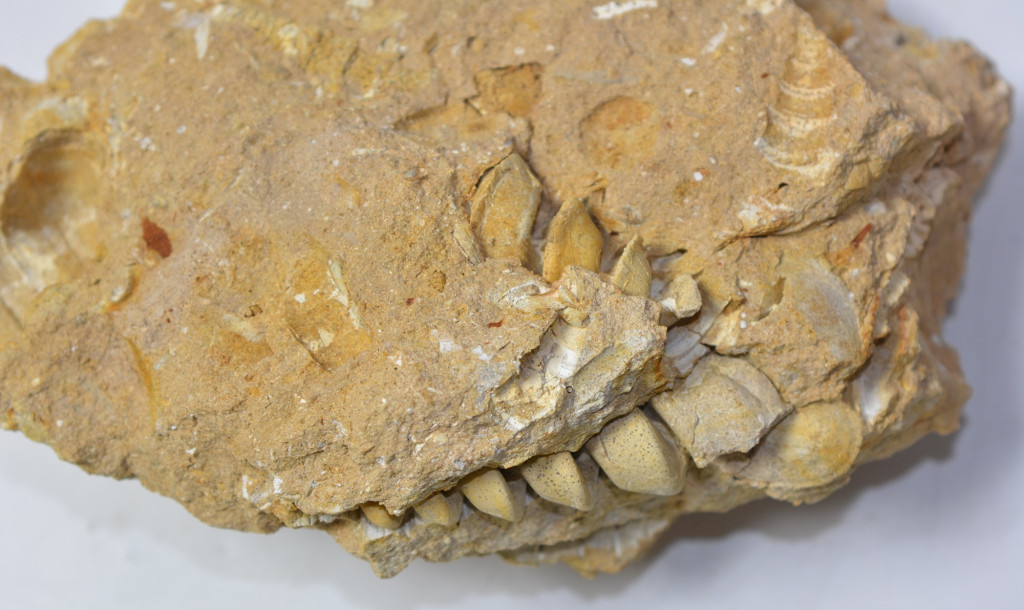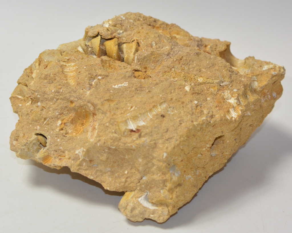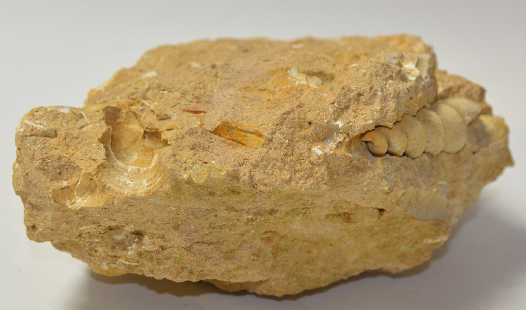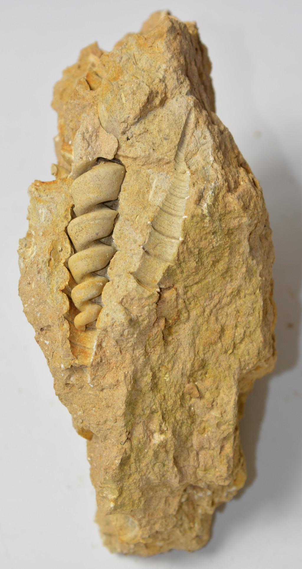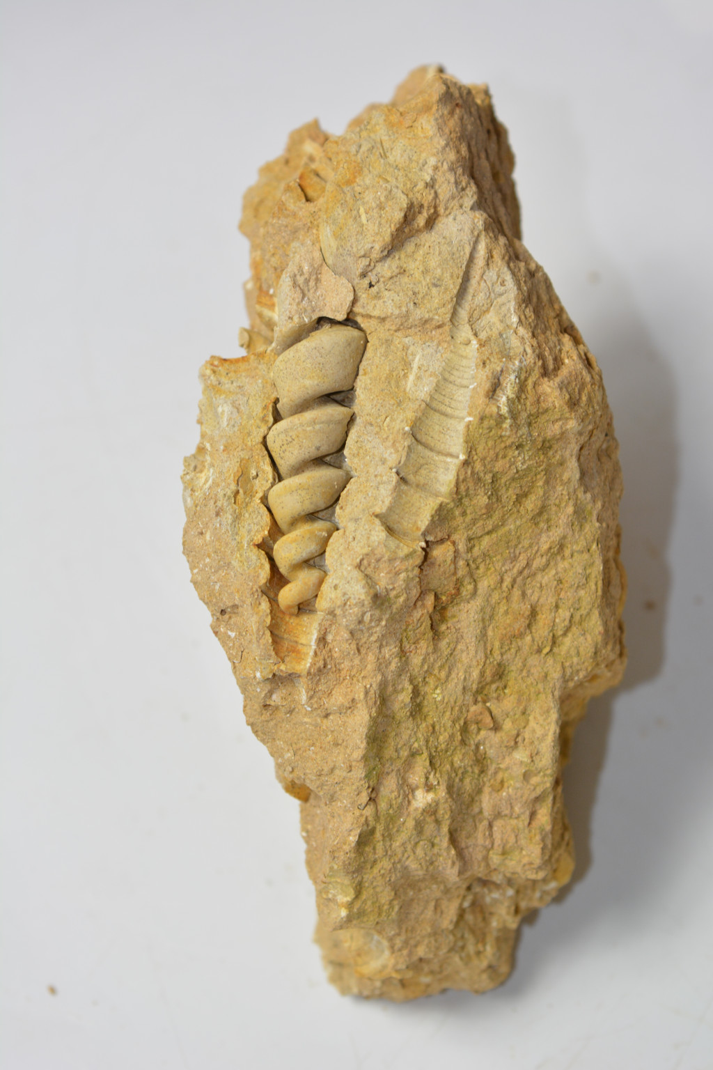 Eocén korú Turitella sp. csiga (kőbél) kövületek kőzetben. A fosszíliák Magyarországon, a Bakony hegységben Dudar település közelében szénbányászat során kerültek a felszínre. A csiga házat kitőltő iszap megkövesedett. Idővel a csigaház hély anyaga visszaoldódótt és megmaradt a kitőltés. A csiga és egyéb fosszíliákat tartalmazó kő mérete kb: 179 mm x 157 mm x 91 mm. Az eocén korú kő Tömege kb: 2527 gramm + csomagolás. A kő más fosszíliák maradványait is tartalmazza.