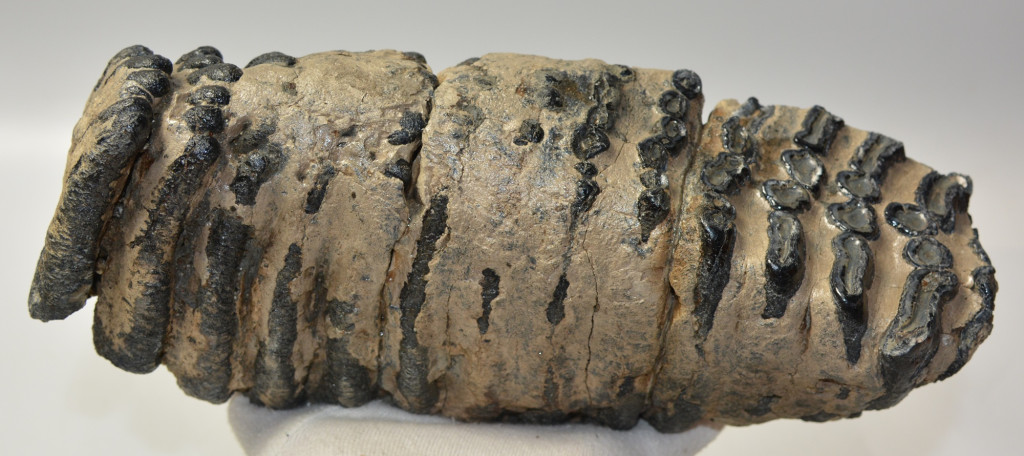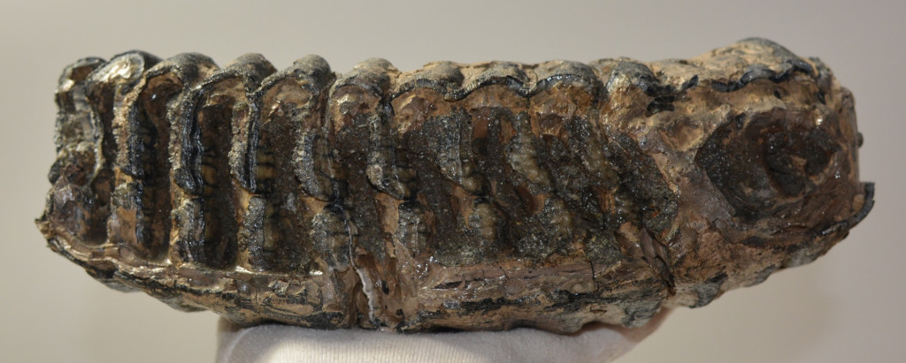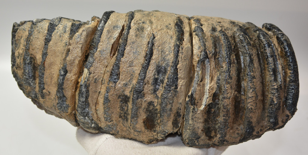 Mammuthus meridionalis (déli mamut) részleges fog. A mamut fosszília Magyarországon, Pest megyében kavicsbányászat során került a felszínre. Megtalálásakor négy darabra volt törve, cianoakriláttal lett összeragasztva. A fog méretei kb: hosszúsága 277 mm, magassága 119 mm, szélessége 94 mm. Tömege kb: 3953 gramm + csomagolás. A fog felülete ethanolba oldott Polyvinyl Butyral 30 nevű anyaggal van konzerválva.