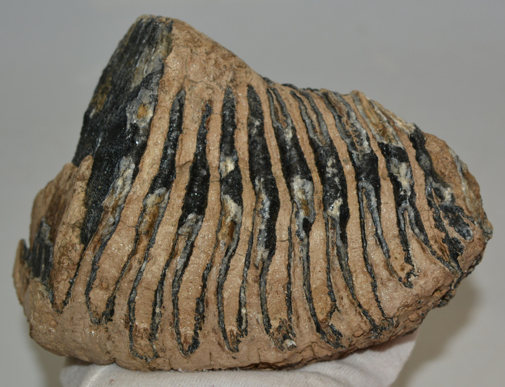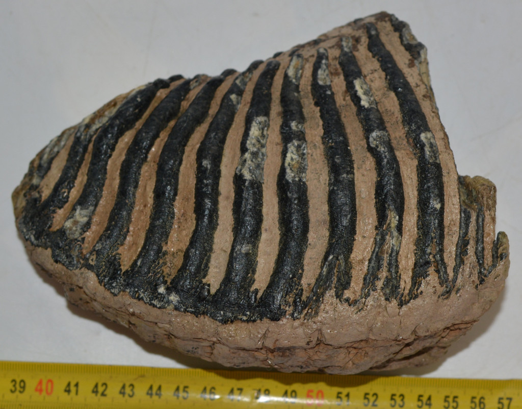 Mammuthus primigenius (gyapjas mamut) részleges fog. A mamut fosszília Magyarországon, Pest megyében kavicsbányászat során került a felszínre. A fog méretei kb: hosszúsága 181 mm, magassága 128 mm, szélessége 84 mm. Tömege kb: 1671 gramm + csomagolás. A fog felülete ethanolba oldott Polyvinyl Butyral 30 nevű anyaggal van konzerválva.