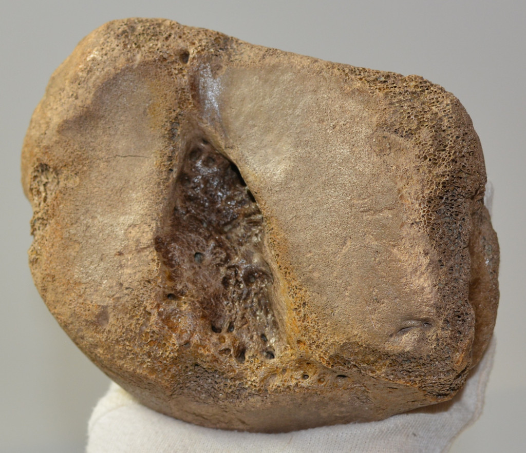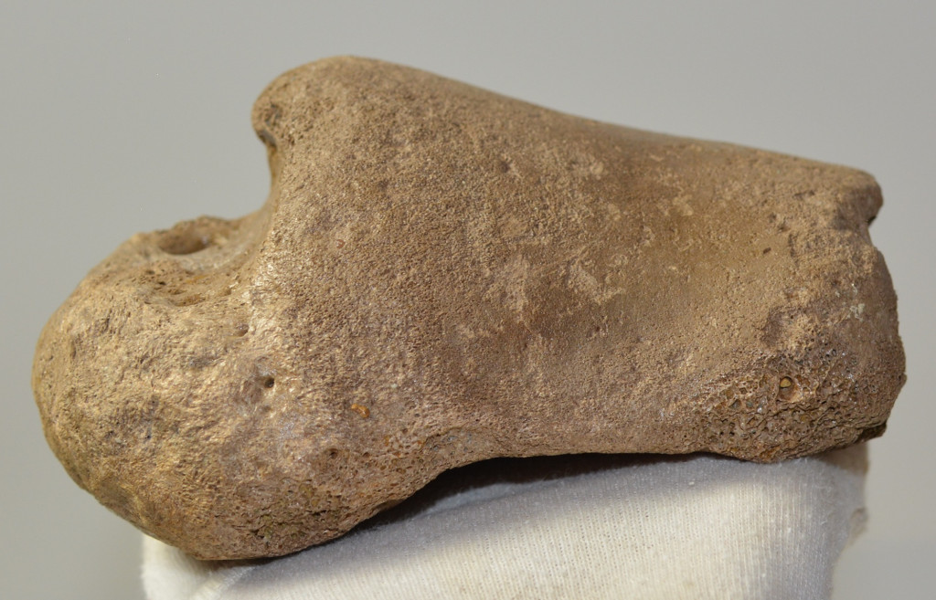 Mammuthus primigenius (gyapjas mamut) egész astragalus csont. A mamut fosszília Magyarországon, Pest megyében kavicsbányászat során került a felszínre. A csont méretei kb: 148 mm x 117 mm x 86 mm. Tömege kb: 599 gramm + csomagolás. A csont felülete ethanolba oldott Polyvinyl Butyral 30 nevű anyaggal van konzerválva.