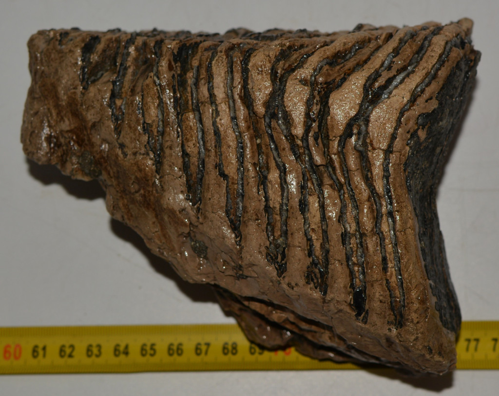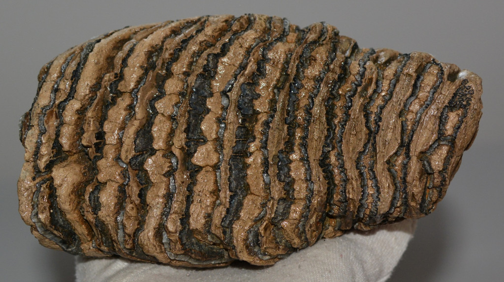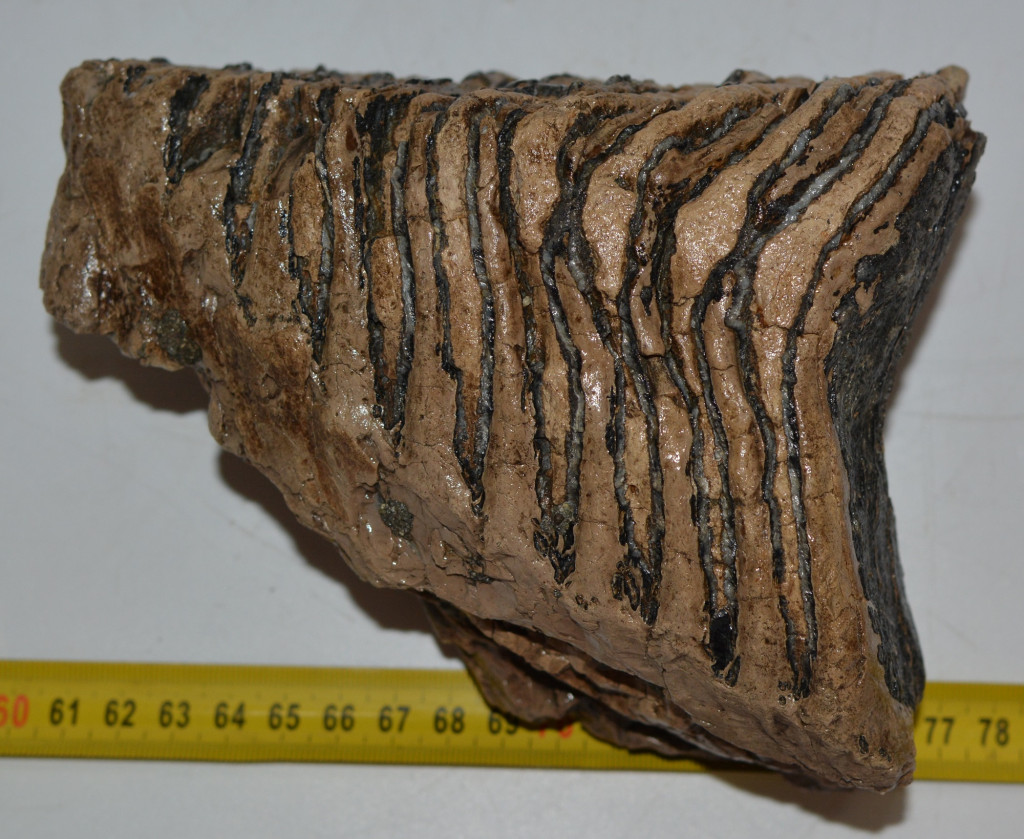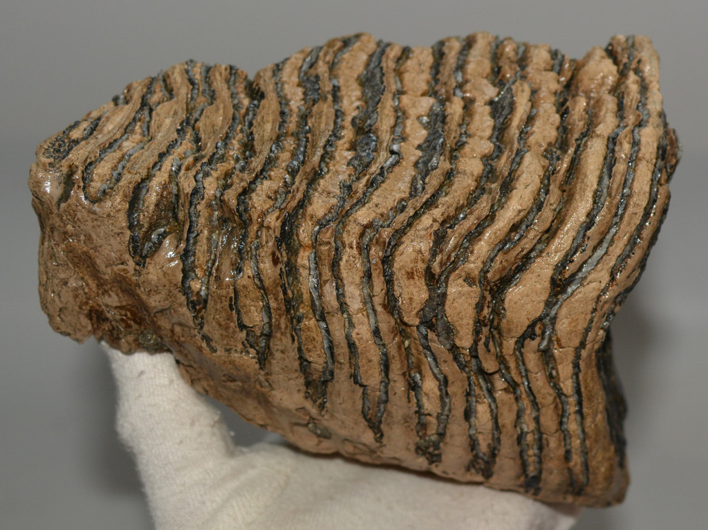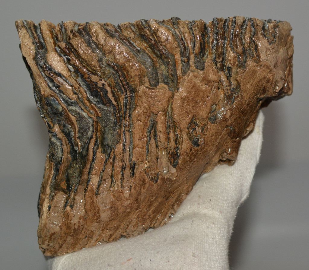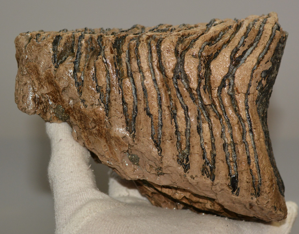 Mammuthus primigenius (gyapjas mamut) részleges fog. A mamut fosszília Magyarországon, Heves megyében kavicsbányászat során került a felszínre. A fog méretei kb: hosszúsága 156 mm, magassága 130 mm, szélessége 90 mm. Tömege kb: 1666 gramm + csomagolás. A fog felülete ethanolba oldott Polyvinyl Butyral 30 nevű anyaggal van konzerválva.