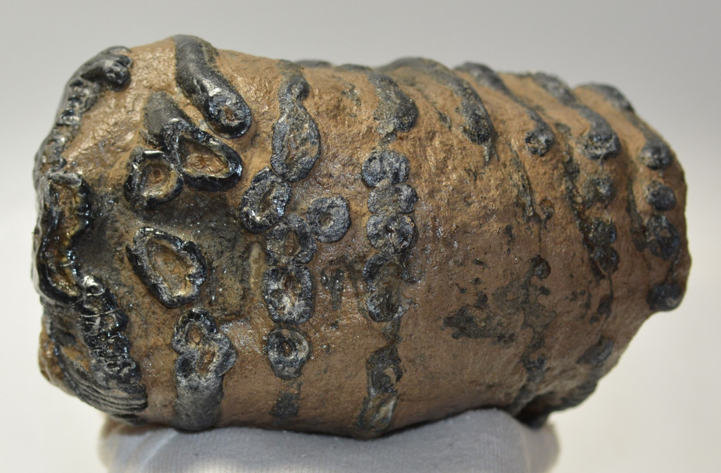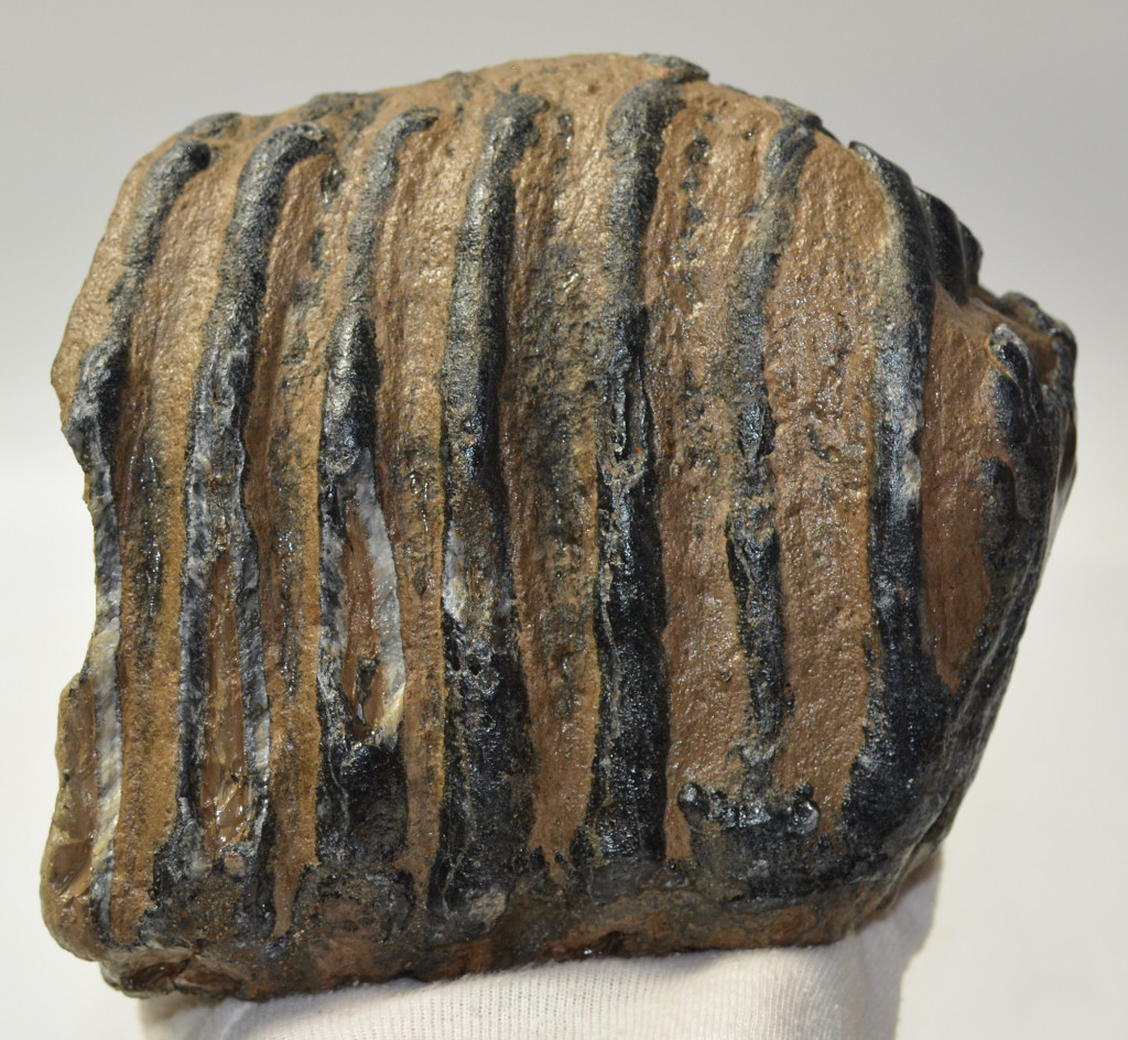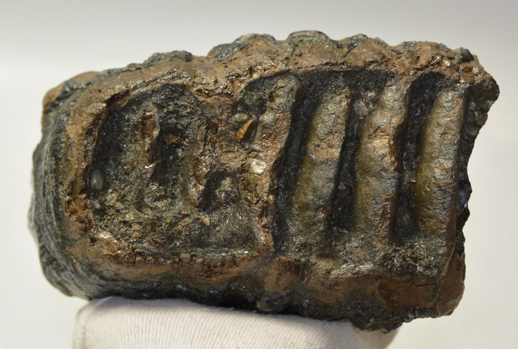 Mammuthus meridionalis (déli mamut) részleges fog. A mamut fosszília Magyarországon, Pest megyében kavicsbányászat során került a felszínre. A fog méretei kb: hosszúsága 157 mm, magassága 148 mm, szélessége 106 mm. Tömege kb: 3301 gramm + csomagolás. A fog felülete ethanolba oldott Polyvinyl Butyral 30 nevű anyaggal van konzerválva.