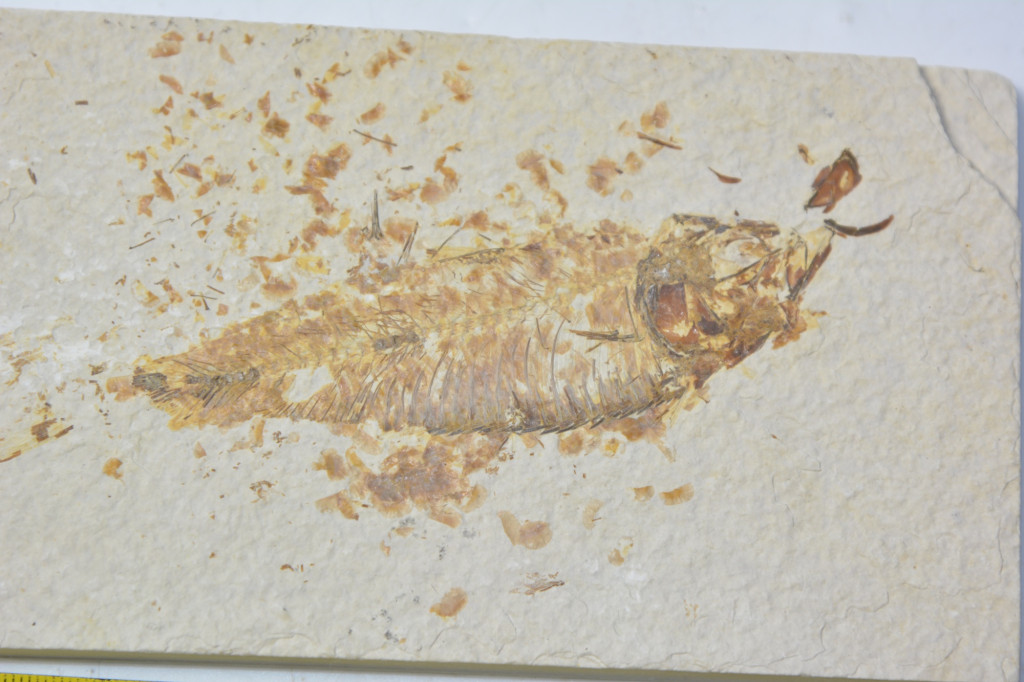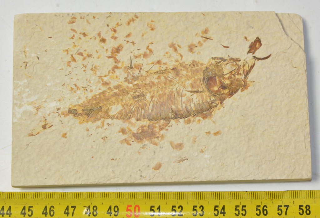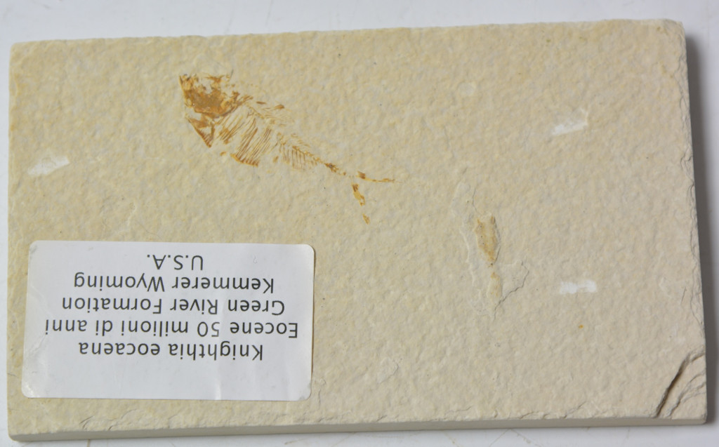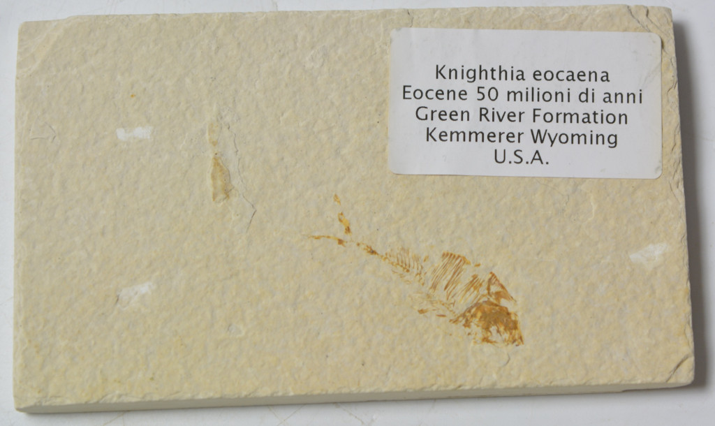 2 db eocén korú (kb: 50 millió éves) Knighthia eocaena nevű hal fosszíliát tartalmazó kő lap. A hal fosszília származási helye U.S.A. Wyoming, Kemmerer, Green River Formation. A halakat tartalmazó kő méretei kb: 138,6 mm x 82 mm x 12 mm. Tömege kb: 252 gramm + csomagolás. A kőlap mind a kettő oldalán látható egy hal kövület.