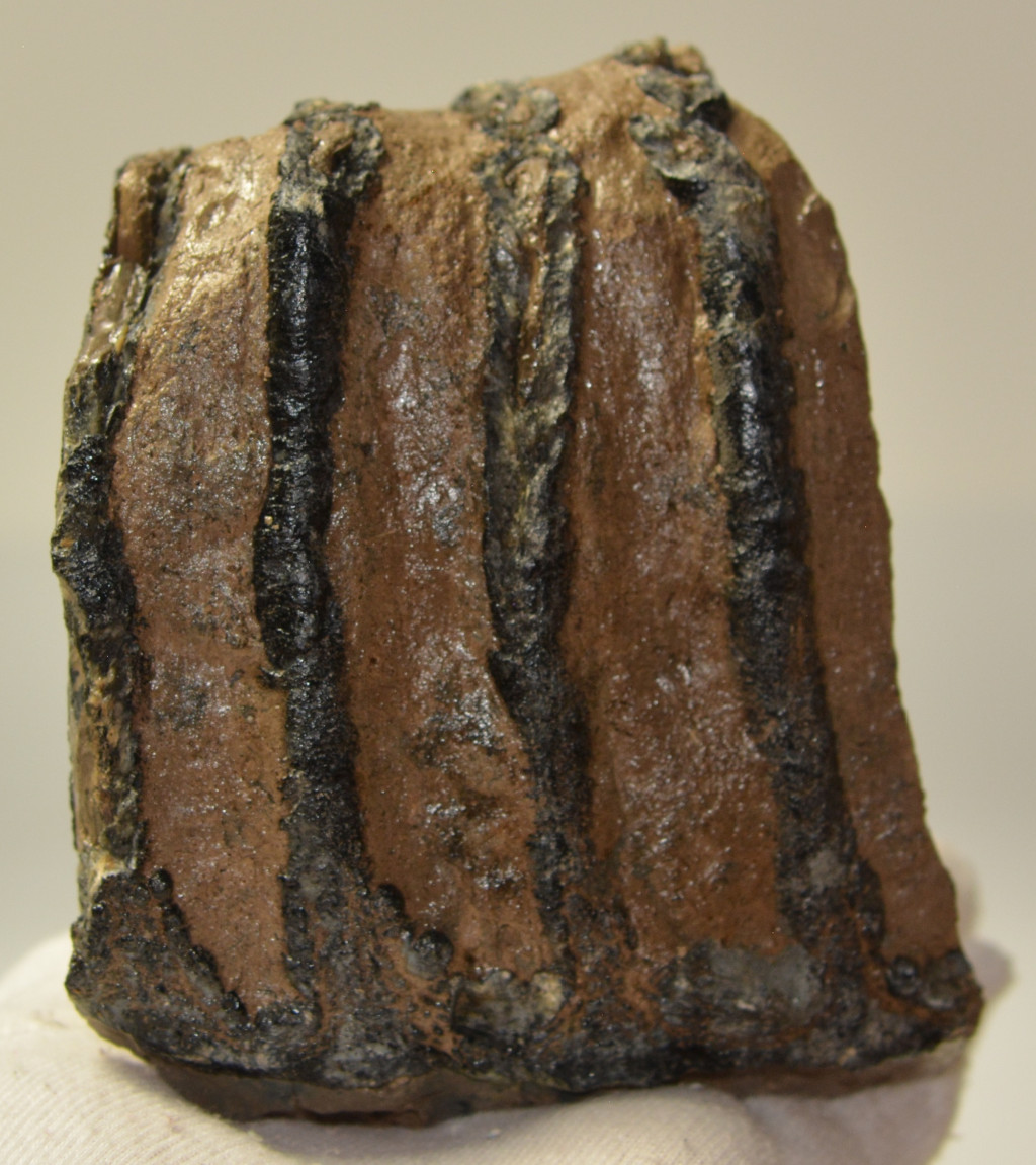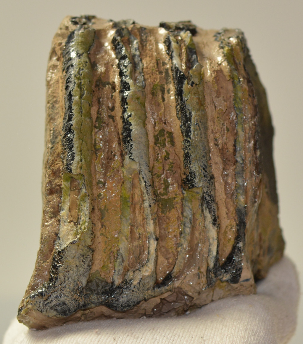 Mammuthus meridionalis (déli mamut) részleges fog. A mamut fosszília Magyarországon, Pest megyében kavicsbányászat során került a felszínre. A fog méretei kb: hosszúsága 92 mm, magassága 123 mm, szélessége 93 mm. Tömege kb: 1372 gramm + csomagolás. A fog felülete ethanolba oldott Polyvinyl Butyral 30 nevű anyaggal van konzerválva.