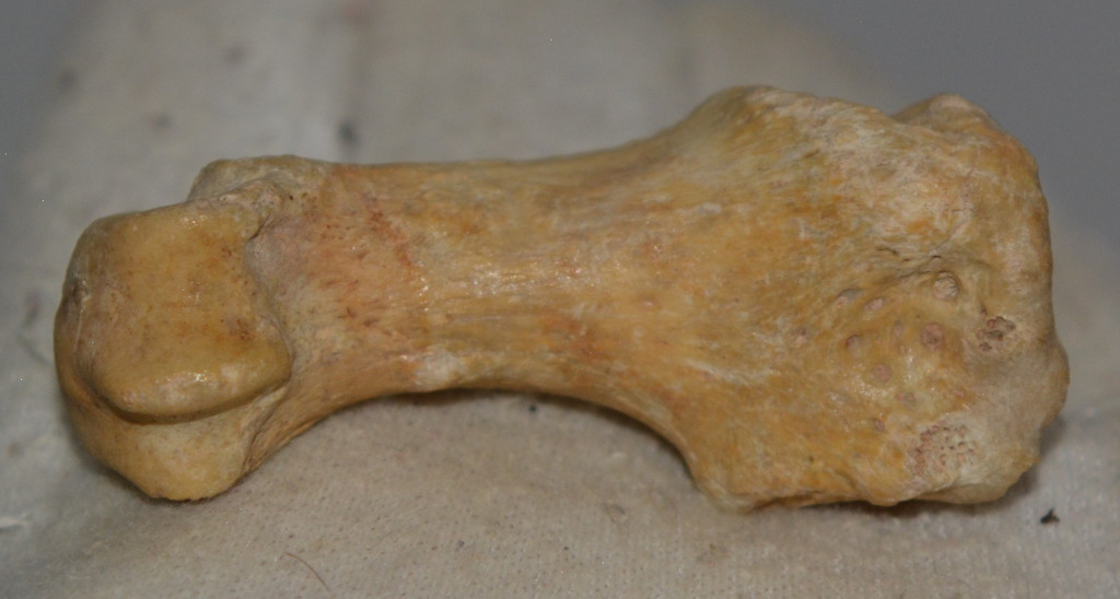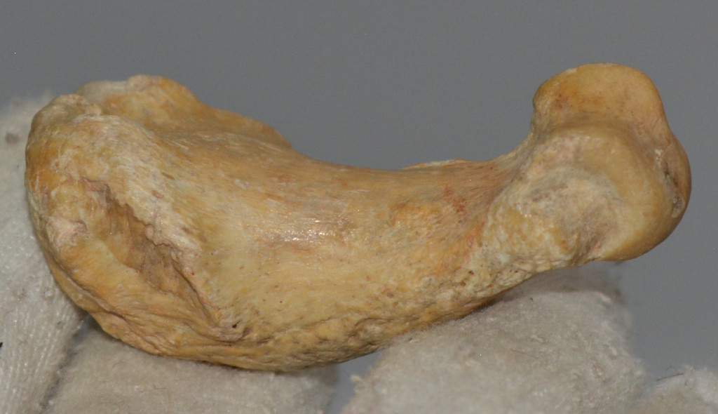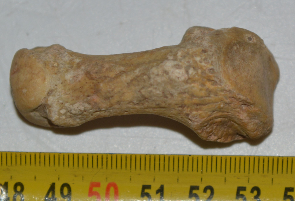 Pleisztocén korú (kb: 35 000 - 70 000 éves) Ursus spelaeus barlangi medve metapodium csont. A medve csont származása: Ausztria, Mixnitz, Stmk. A csont méretei kb: 52,3 mm x 28,4 mm x 24,6 mm. Tömege kb: 19 gramm + csomagolás. A csont természetes állapotú, nincs konzerválva.