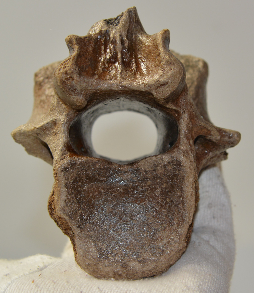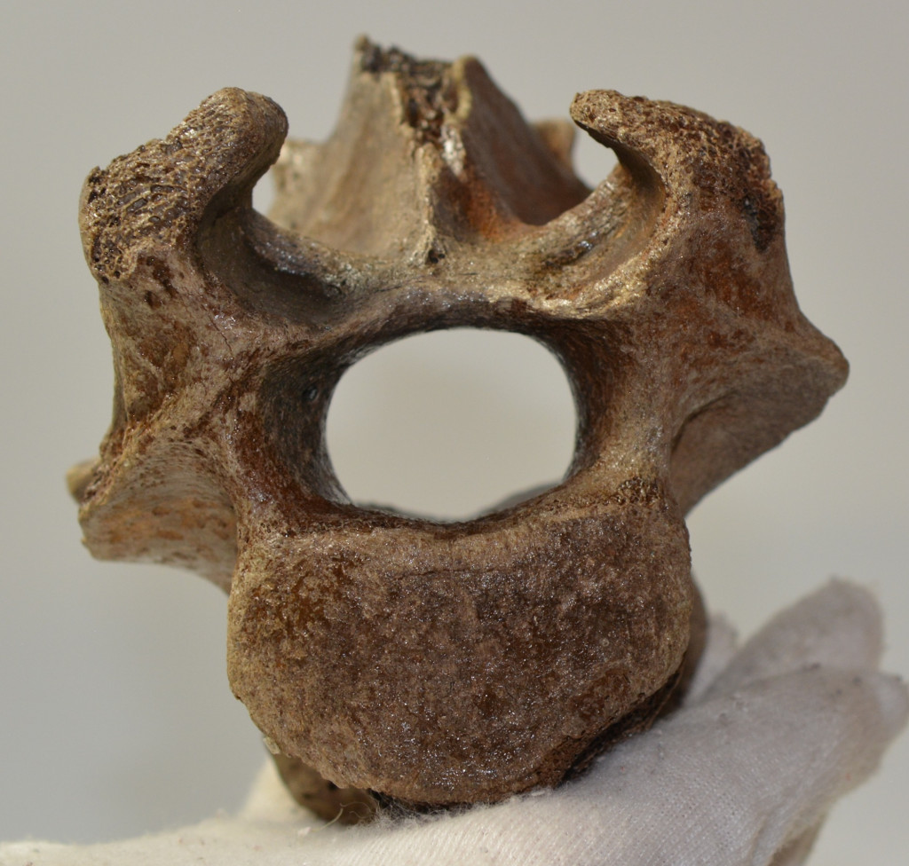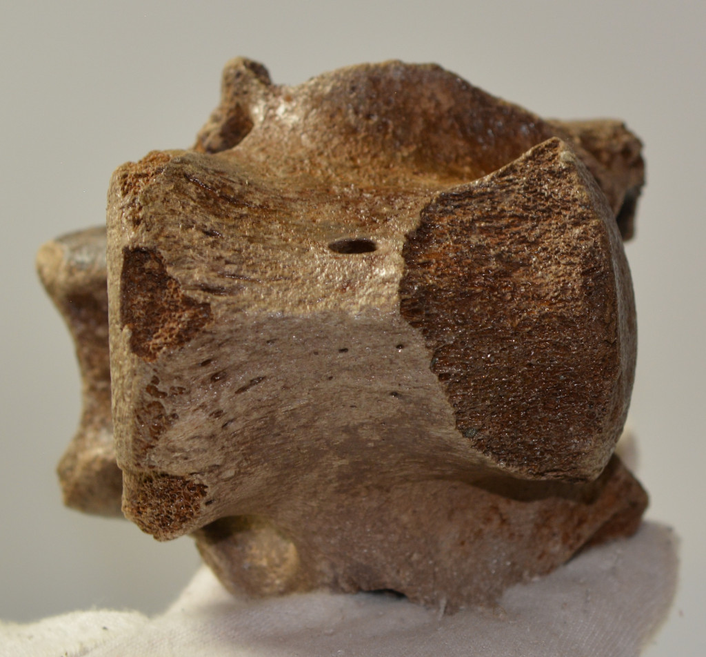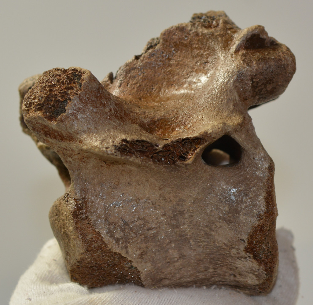 Bison priscus (sztyeppei bölény) részleges hátcsigolya csont. A bölény fosszília Magyarországon, Pest megyében kavicsbányászat során került a felszínre. A bölény fosszília méretei kb: hosszúsága 111 mm, magassága 115 mm, szélessége 99 mm. Tömege kb: 316 gramm + csomagolás. A fosszília felülete ethanolba oldott Polyvinyl Butyral 30 nevű anyaggal van konzerválva.