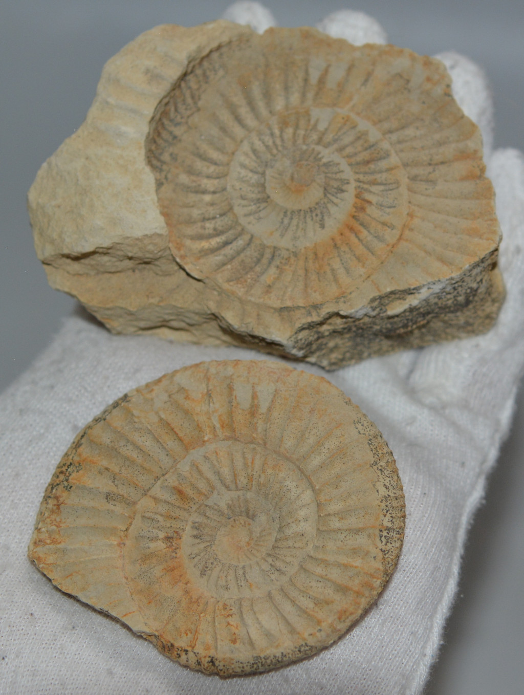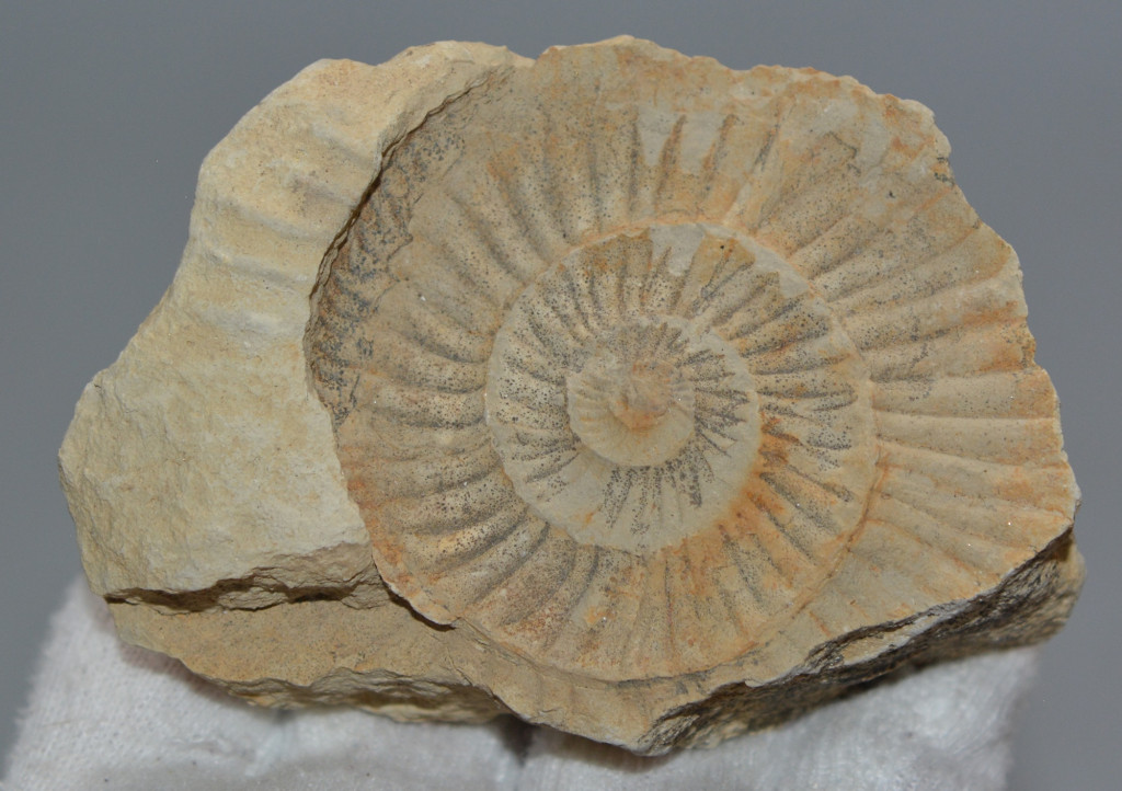 Jura korú Ataxioceras sp. ammonitesz alapkőzettel. Az ammonitesz származási helye Németország, Staffelstein area. Az ammonitesz mérete kőzettel együtt kb: 84,4 mm x 60 mm x 39 mm. Tömege kb: 266 gramm + csomagolás. Az ammonitesz levehető az alapkőzetről, alatta szépen látszik az ammonitesz lenyomata is. Az ammonitesz legnagyobb átmérője 64 mm.