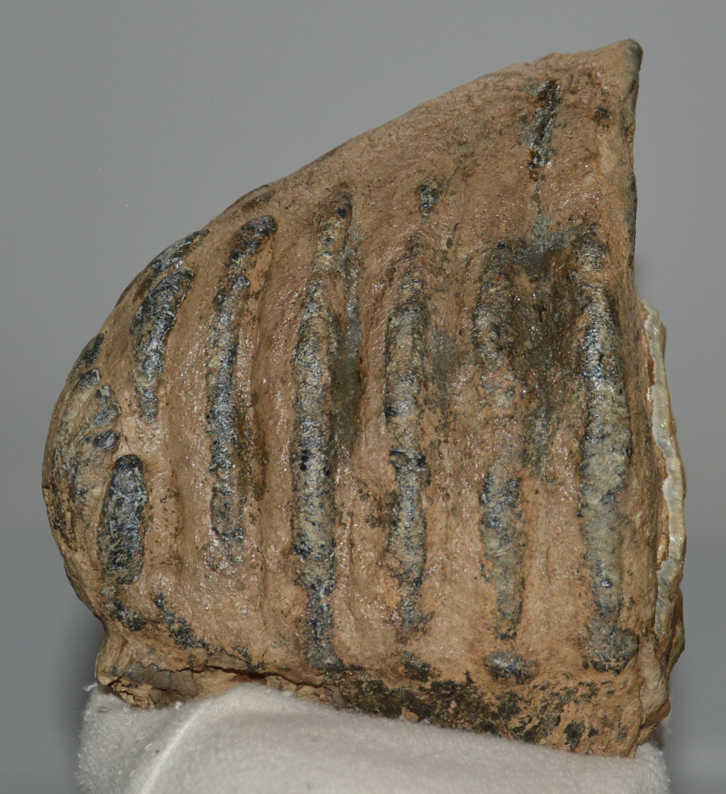 Mammuthus meridionalis (déli mamut) részleges fog. A mamut fosszília Magyarországon, Pest megyében kavicsbányászat során került a felszínre. A fog méretei kb: hosszúsága 125 mm, magassága 145 mm, szélessége 96 mm. Tömege kb: 1680 gramm + csomagolás. A fog felülete ethanolba oldott Polyvinyl Butyral 30 nevű anyaggal van konzerválva.