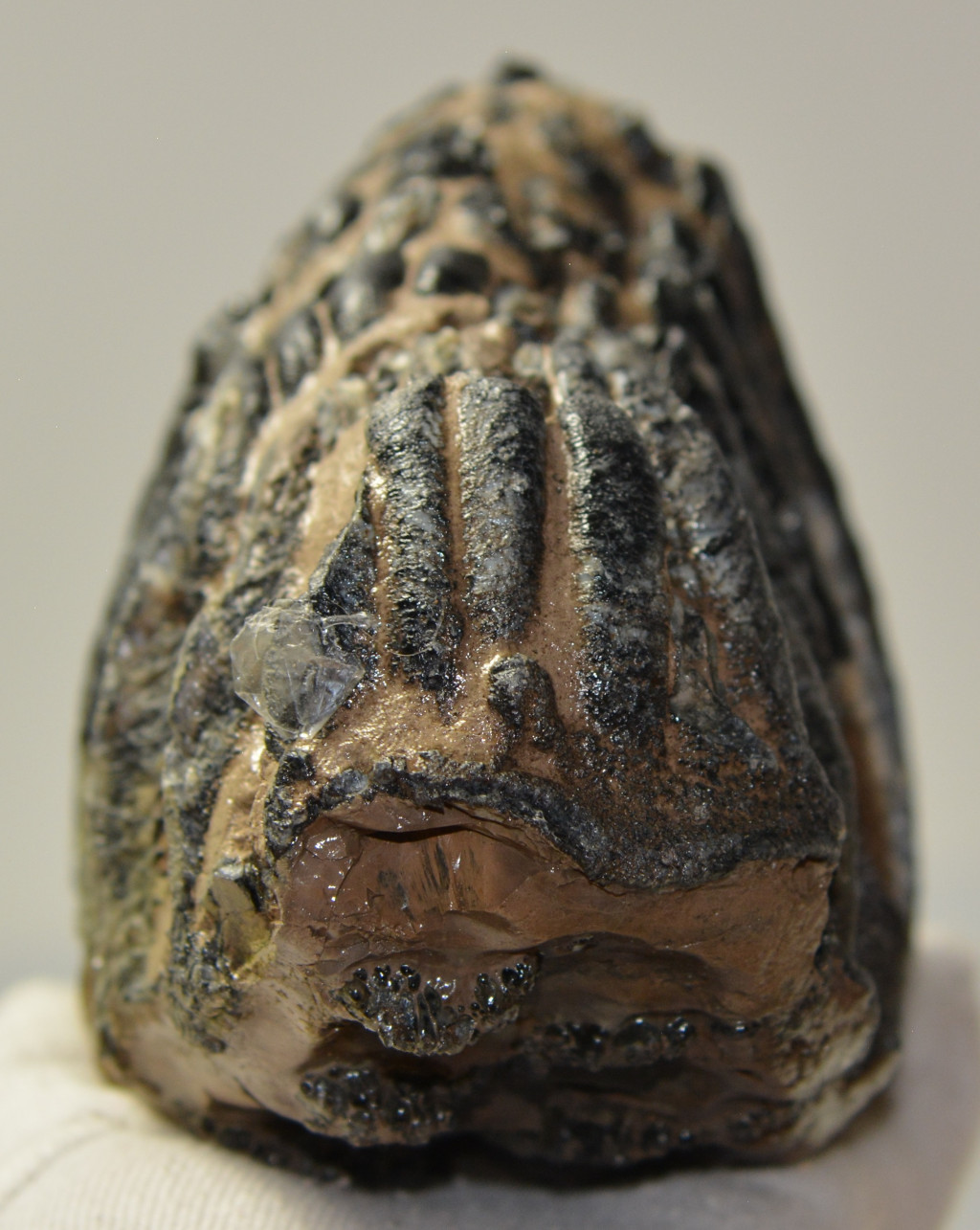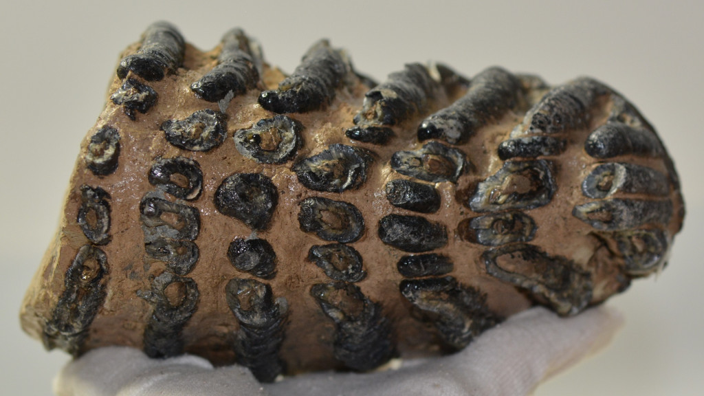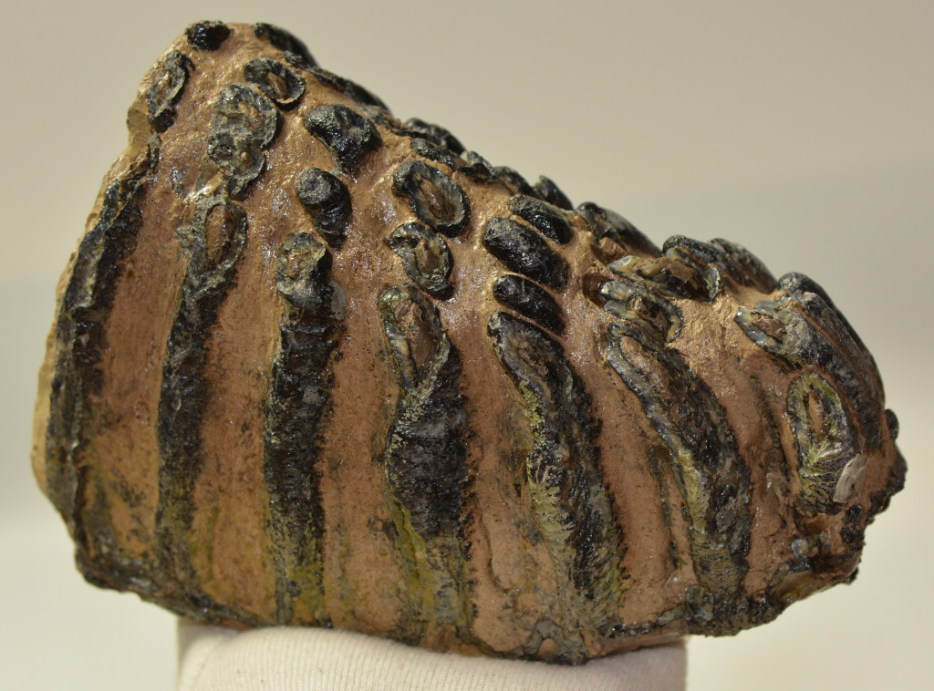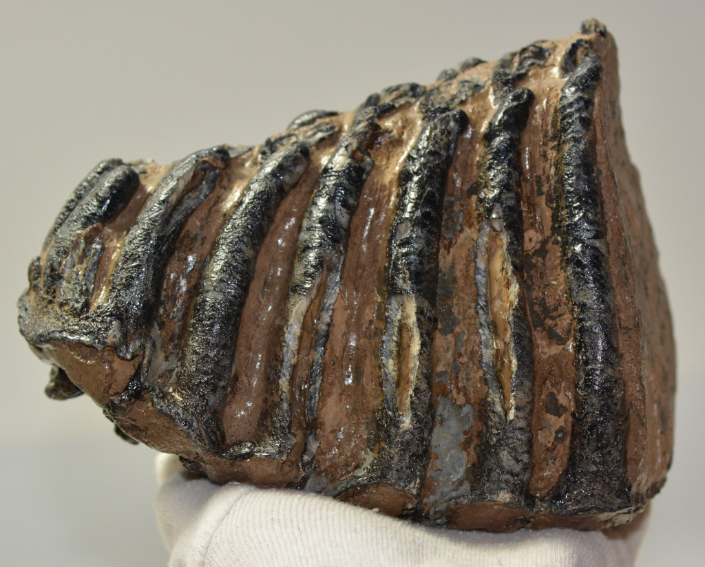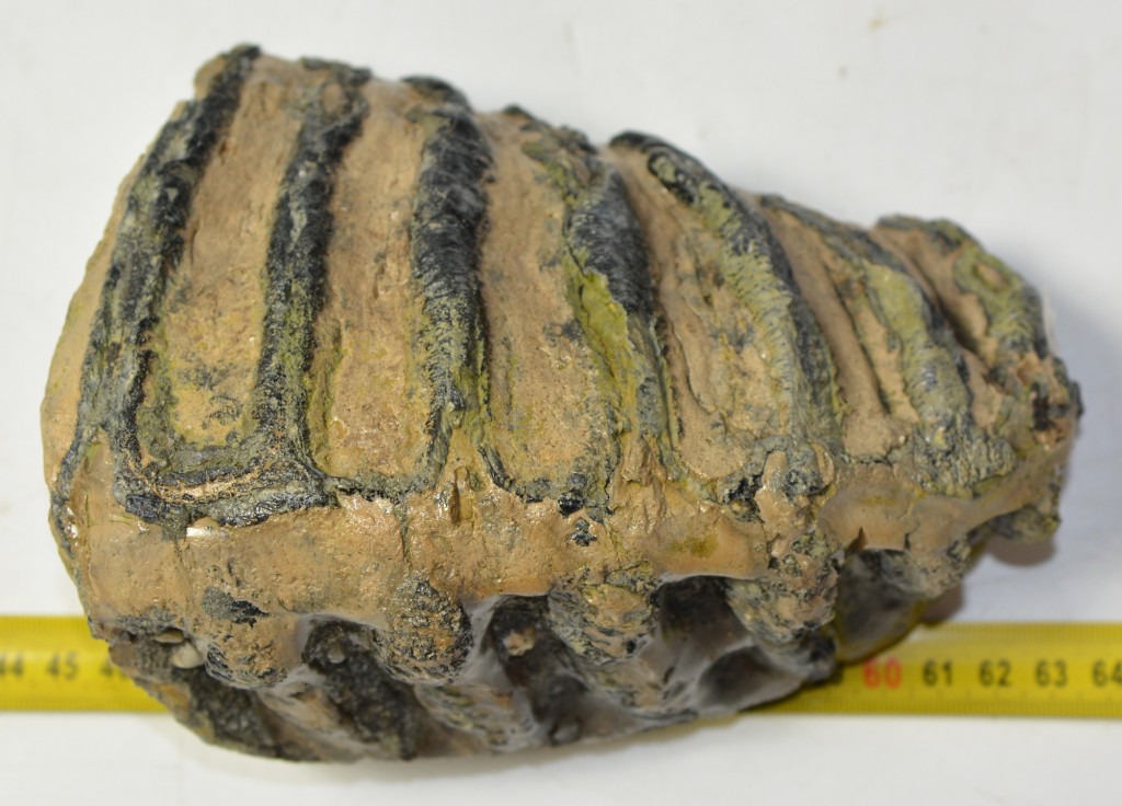 Mammuthus meridionalis (déli mamut) részleges fog. A mamut fosszília Magyarországon, Pest megyében kavicsbányászat során került a felszínre. A fog méretei kb: hosszúsága 171 mm, magassága 129 mm, szélessége 99 mm. Tömege kb: 1925 gramm + csomagolás. A fog felülete ethanolba oldott Polyvinyl Butyral 30 nevű anyaggal van konzerválva.