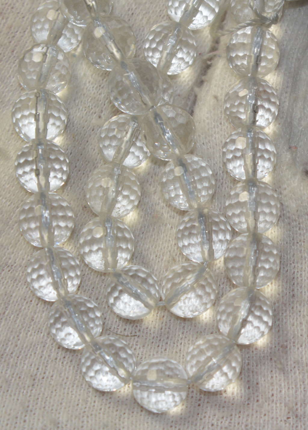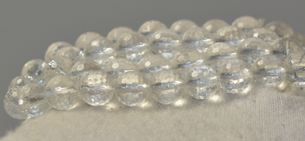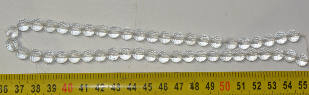 Faceted ball-shaped beads made of natural quartz crystal. The size of the beads is approx. 8 - 8.3 mm. The length of the necklace is approx. 38-40 cm. The weight of the necklace is approx. 35-37 grams.