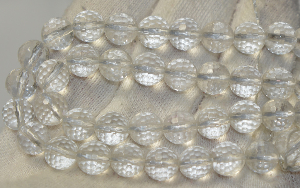 Natural quartz crystal faceted ball-shaped beads